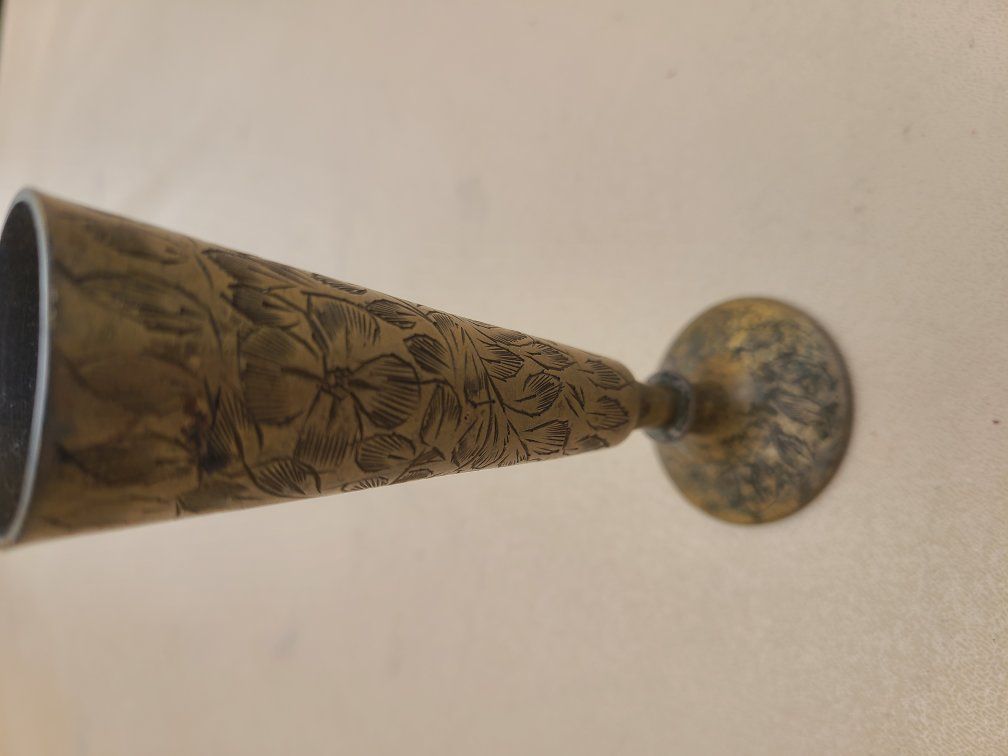 Vintage Hand Etched Solid Brass 5” Tall Bud Vase India Ornate
