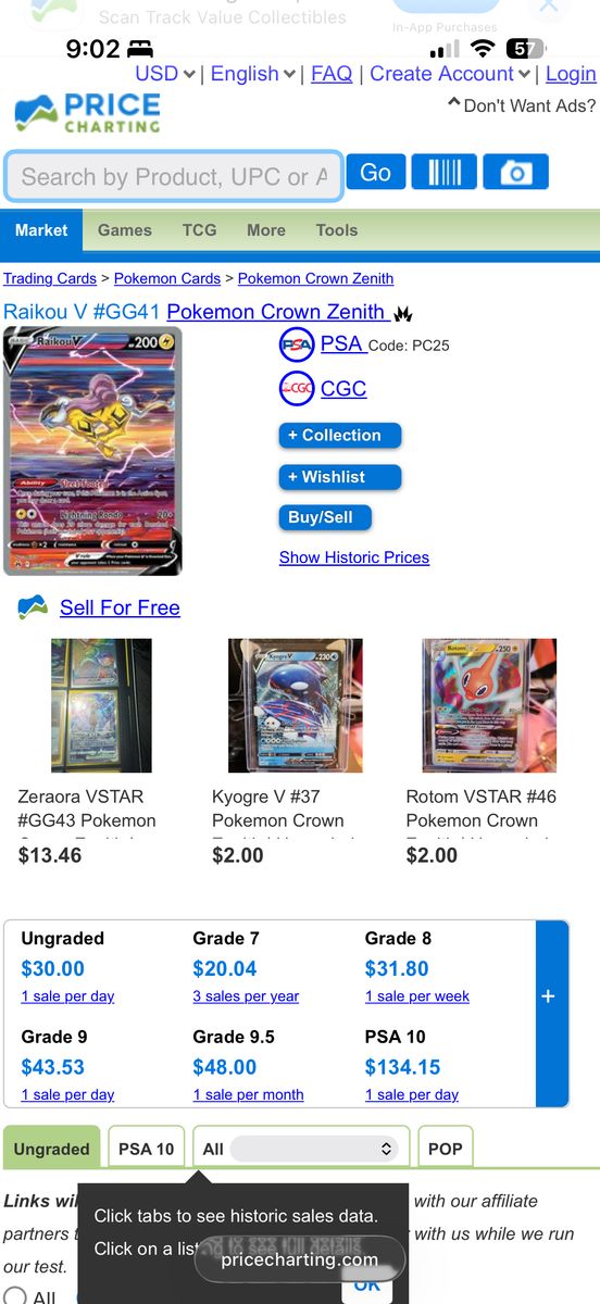 Pokemon Crown Zenith Raikou V GG41 NM condition $25