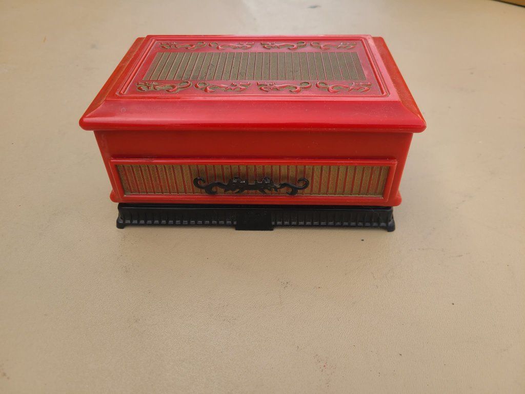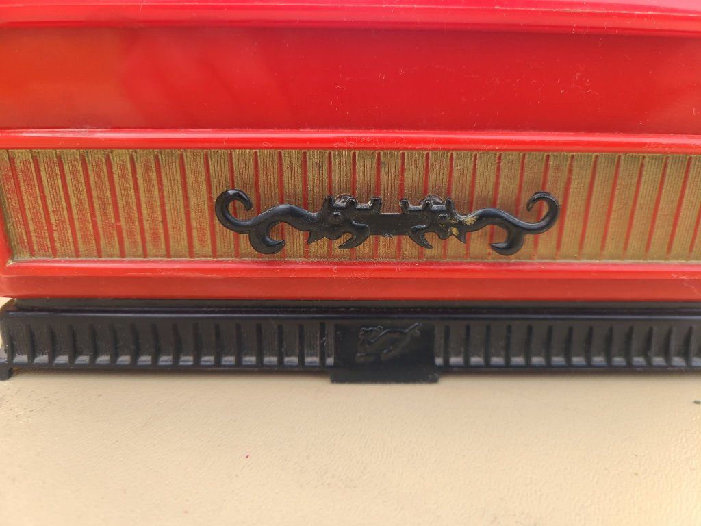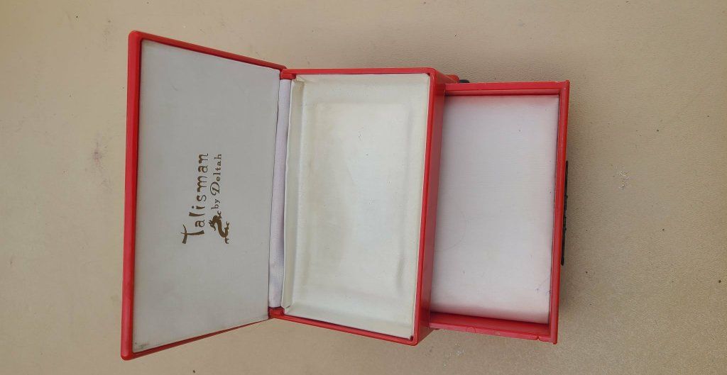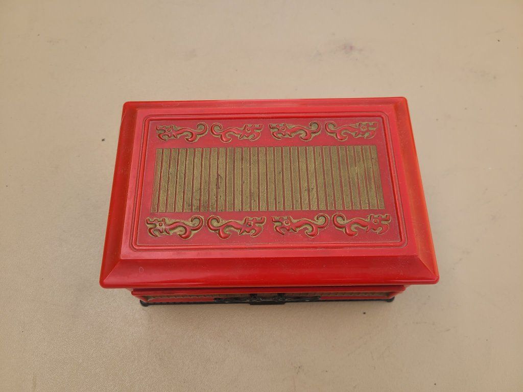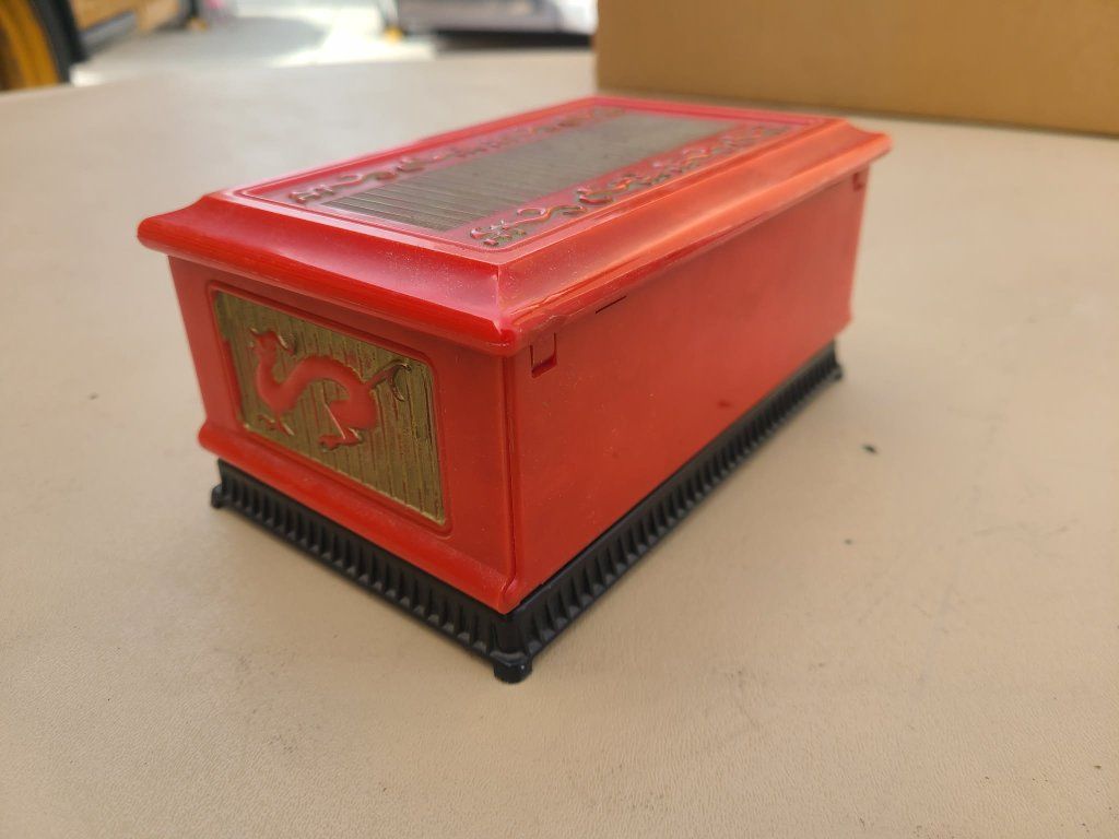 Vintage Mid-Century Talisman by Deltah Jewelry Box Asian Dragon Red Plastic
