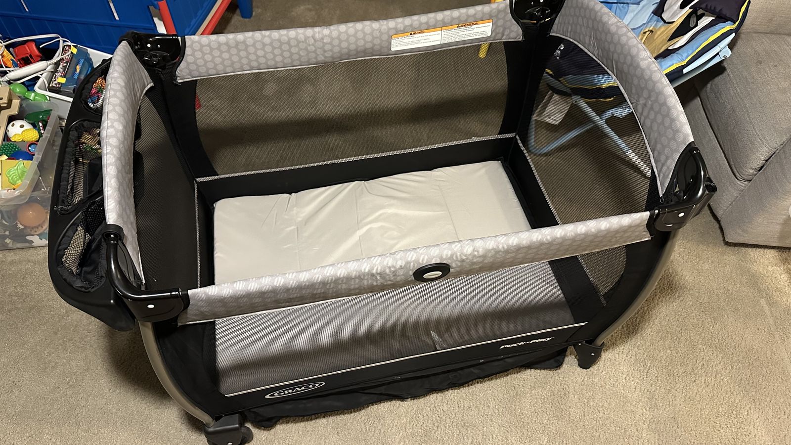 ZelleLightly used Graco Pack n play with the baby bassinet and change table.