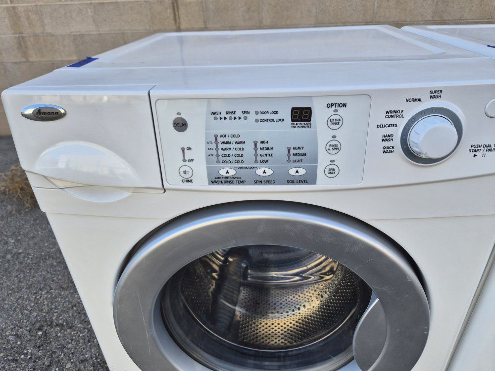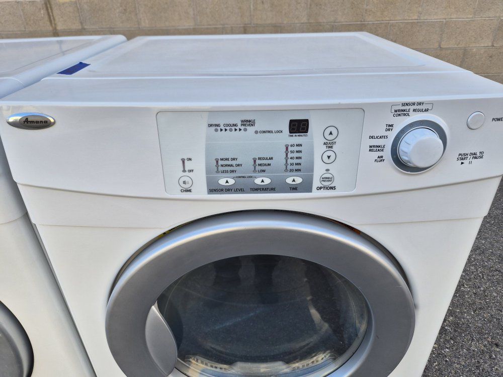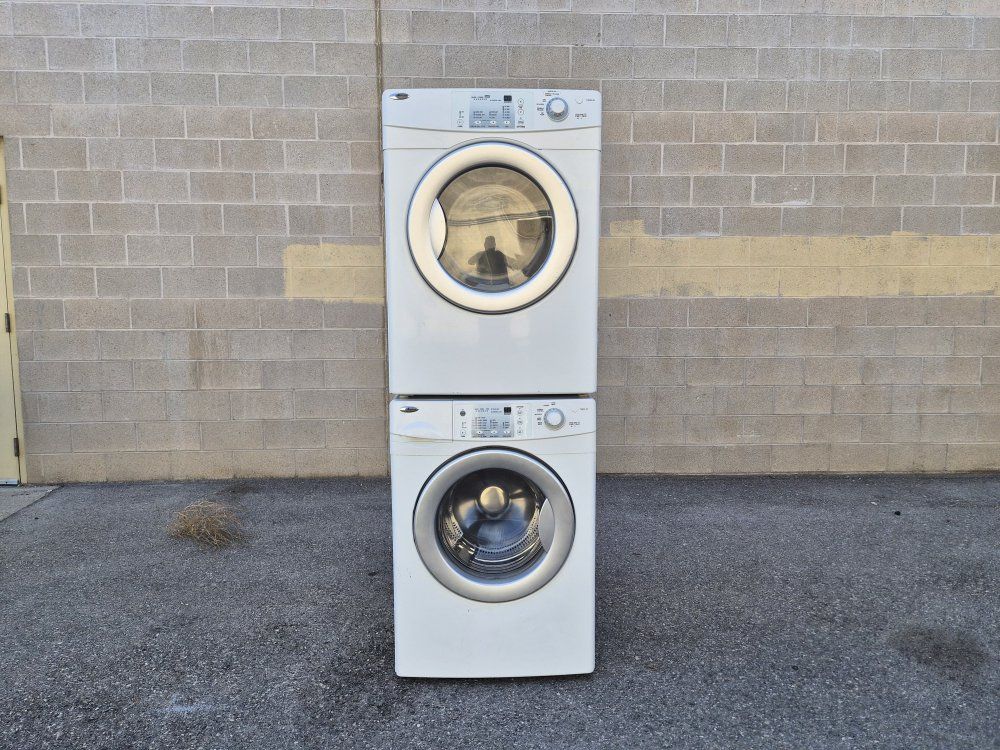 The washer and front-loading dryer can be used together or stacked. Heavy work and commercial quality. It has all the options, cycles and heat levels and it looks and works like new. It comes with warranty and delivery on the sidewalk available.