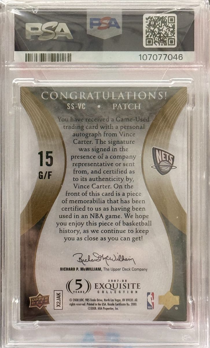 ZelleUpper Deck Exquisite Basketball was one of the best products out there which holds a game worn jersey swatch signed by Vince Carter and authenticated by PSA.