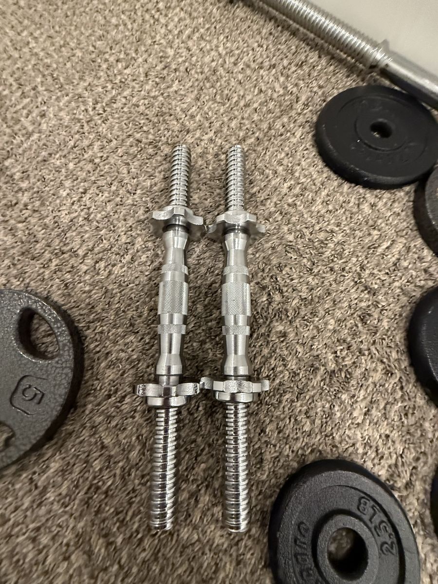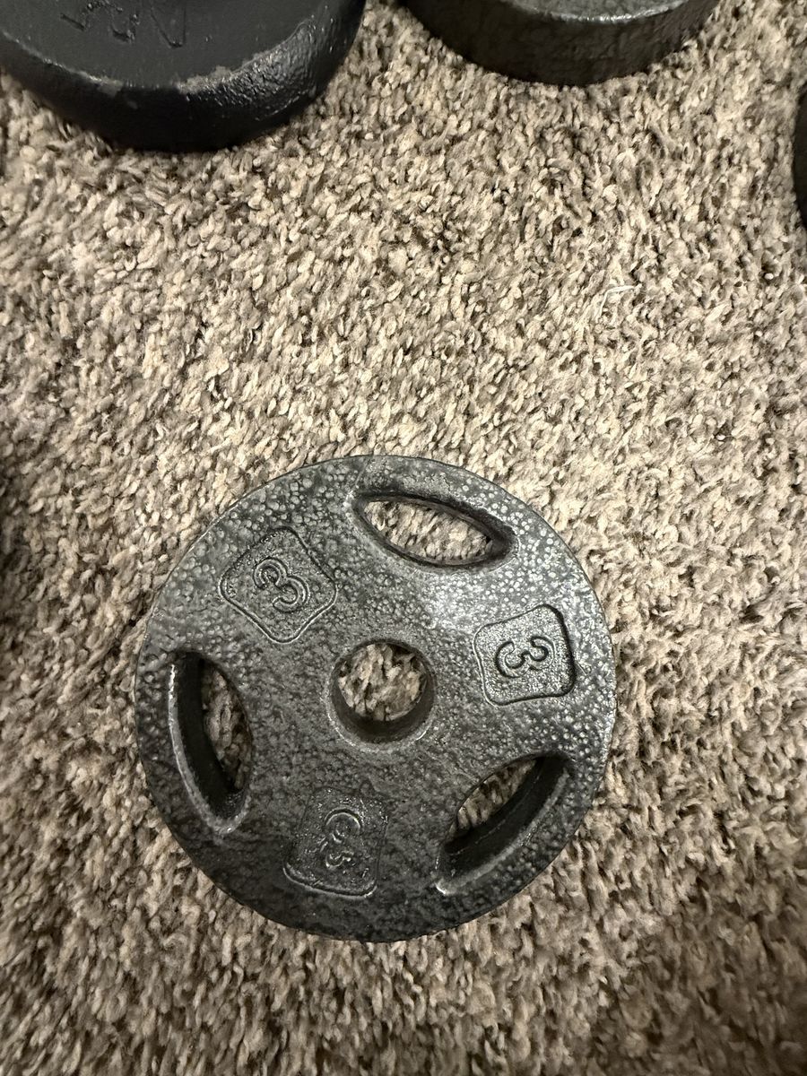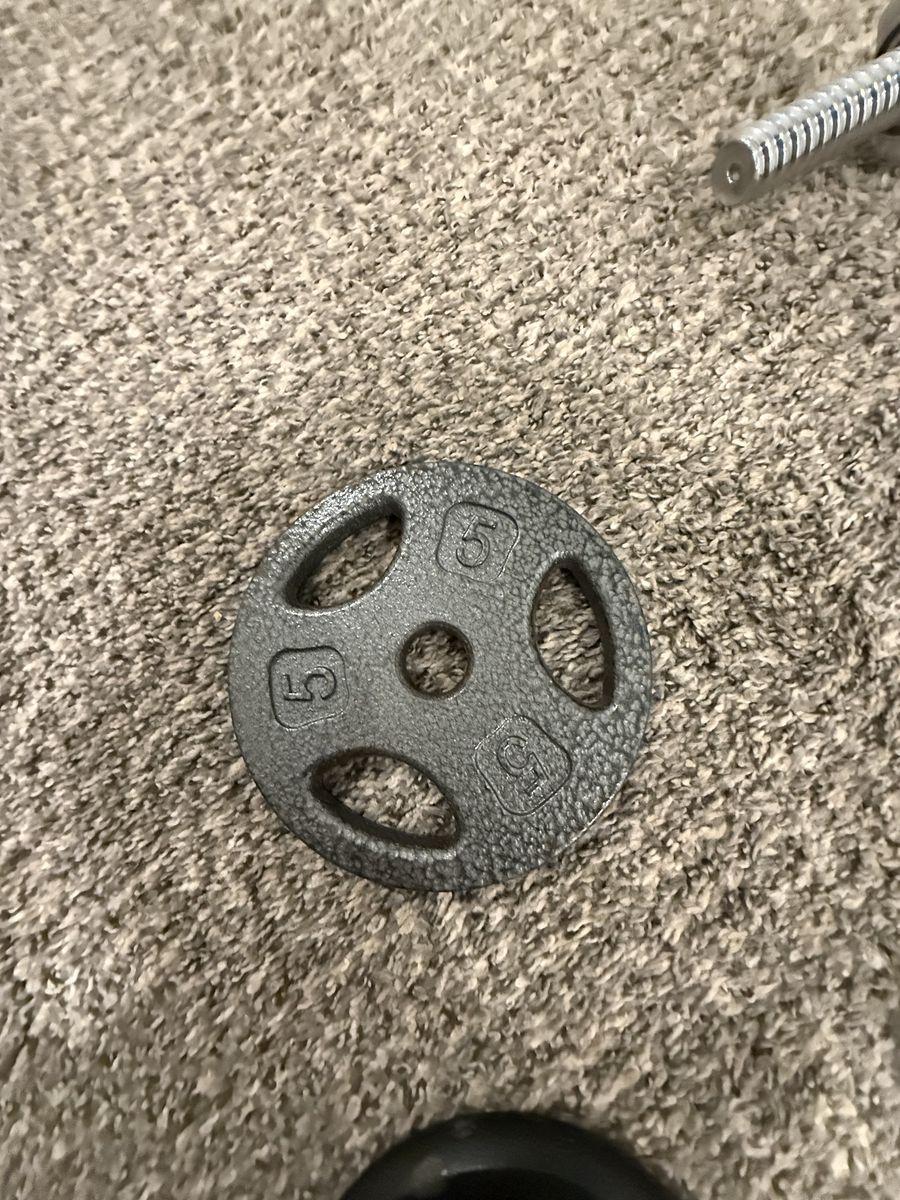 ApplePayThere is 11, five pound weights There is 4, three pound weights There is 2, two and a half weights There is 2, adjustable dumbbells and 1 bar I need to get rid of them fast to pay for bills Shot me a price and I’ll probably take it