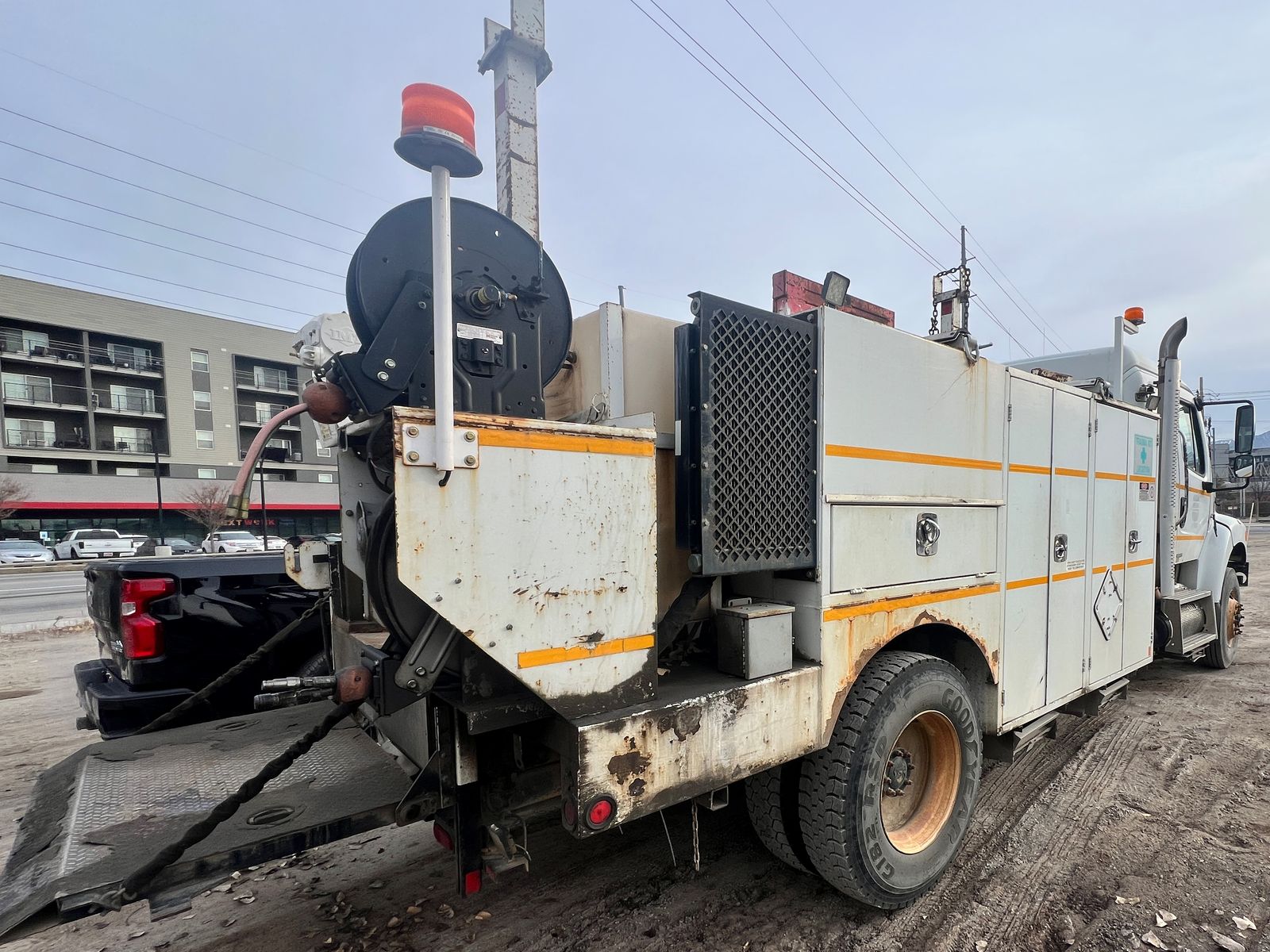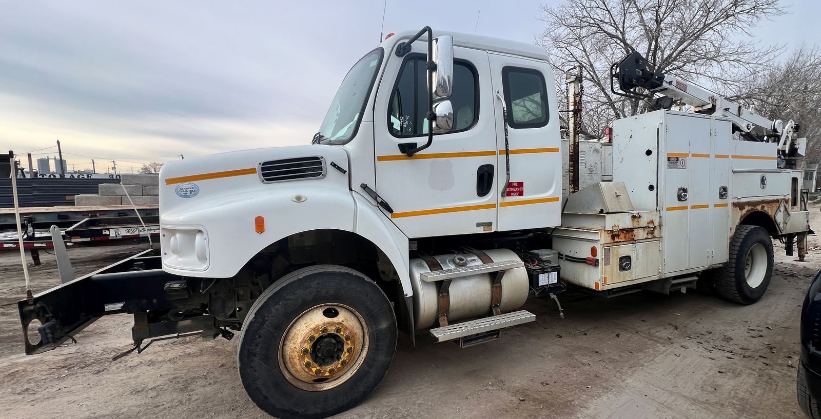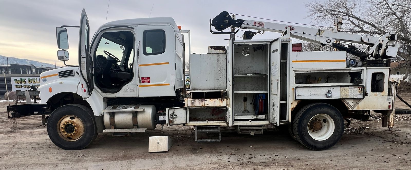 Venmo2010 Freightliner ***JUST REDUCED PRICE*** M2 106, service / mechanics truck, 162,462 miles, Cummins diesel engine, 8.3L 6-cylinder, 260 HP, Eaton 9-speed manual transmission, IMT Model 2820 telescopic and rotating crane with 5,000 lbs capacity, horizontal reach 20 ft 6 in, auxiliary fuel cell, hydraulic fluid tank, 223-inch wheelbase, heat, A/C, steel wheels, service bed size 149" L x 41"W, PTO-driven hydraulic system with dash-controlled remote idle increase/decrease, hydraulic hose reel, air hose reel, exterior work lights, crane pedestal with hydraulic rotation, stabilizer/outrigger jacks with rear stabilizer safety post and chain retention, qty 12 locking toolboxes with pull-out drawers, folding lift gate measuring 36"x 57", 700-watt power inverter with three 120-volt outlets. Truck Operates as it should Call with questions, Videos Available, Financing available.