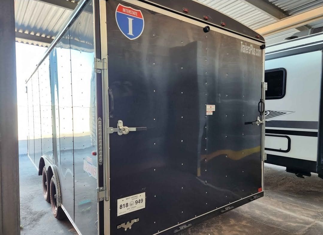 • 2025 8.5 x 20 enclosed trailer • Dual 5200 lb axles • Anti-sway weight distribution hitch • Spare parts and fluids • Helmet