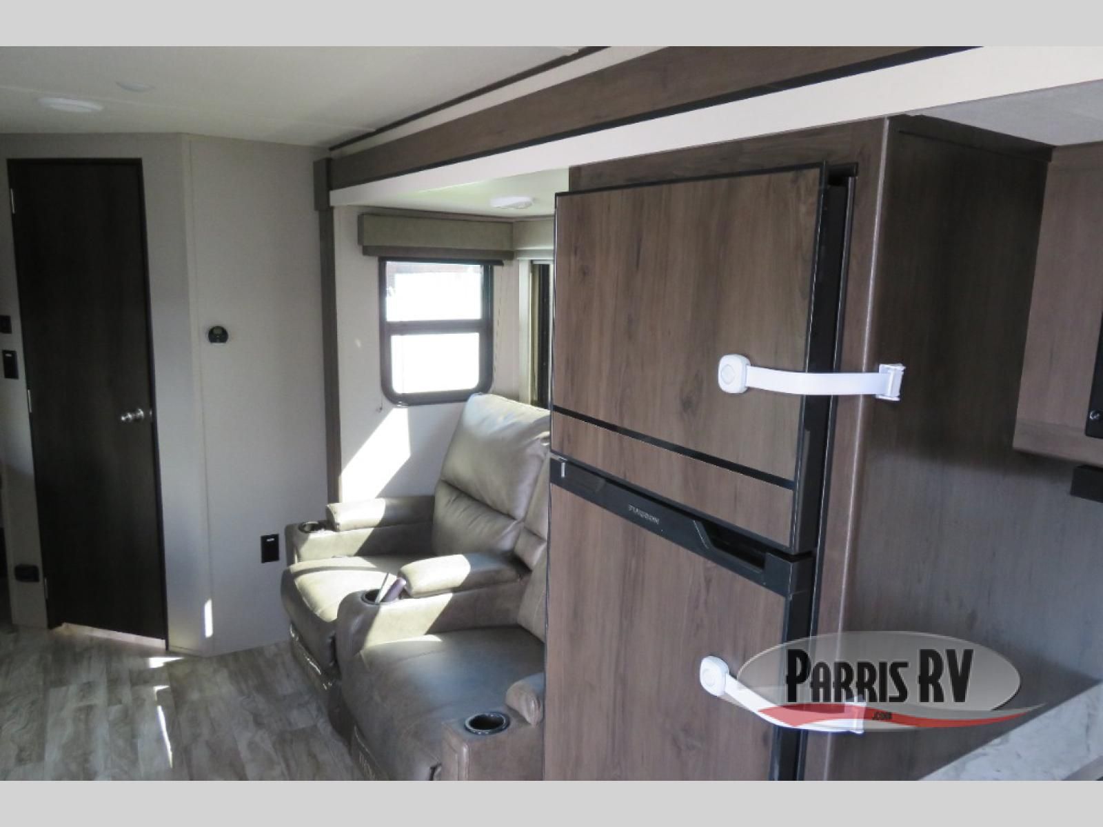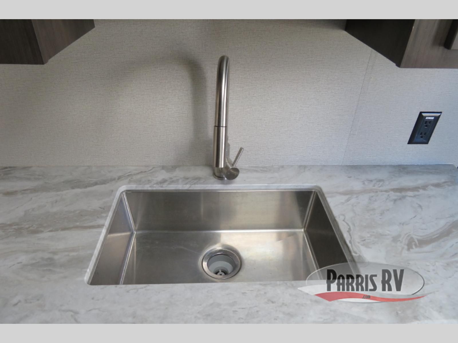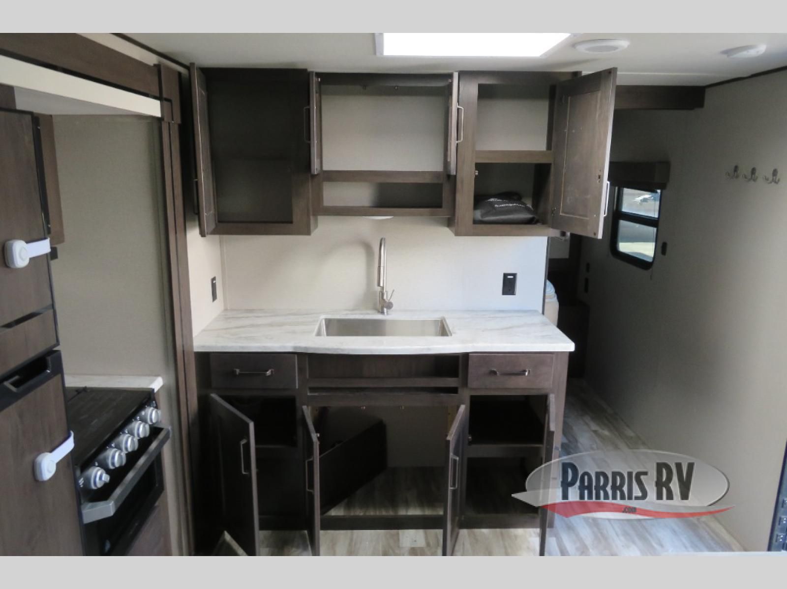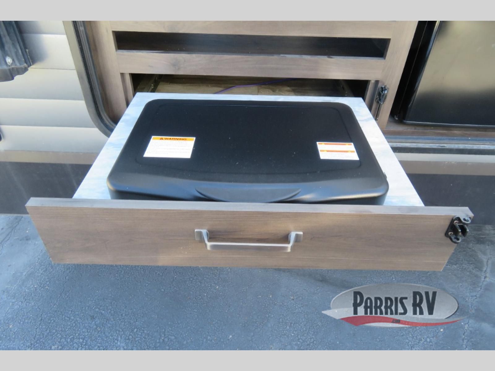 You will have such grand adventures with this Transcend Xplor travel trailer! The kitchen is equipped with all of the amenities you typically use, like a three-burner range with oven, a microwave, a high-rise faucet with pull-down sprayer, and a double-door refrigerator. There is even a pet drawer below the refrigerator so that your puppy can eat a full meal too. Spend some time together as a family on the booth dinette, or lounge back in comfort on the 60" tri-fold sofa. The full bathroom provides excellent convenience with its walk-in shower, linen closet, and vanity, and you will find the outdoor kitchen to be a great bonus feature that allows you to cook while you are outside socializing with the neighbors.