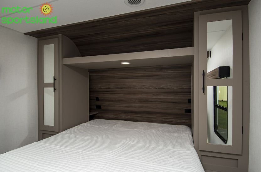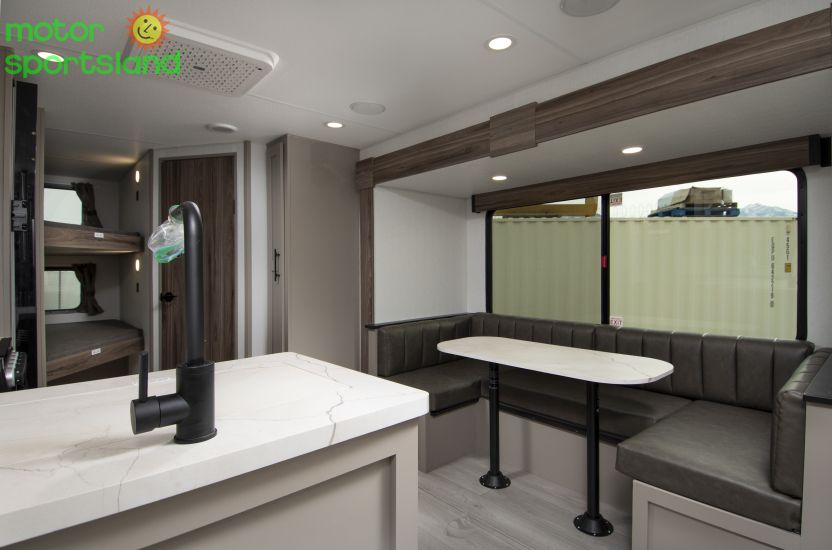 Family-Friendly Layout: Spacious bunkhouse design in the 241BHKSE ensures everyone has their own cozy spot, perfect for kids and guests. Luxurious Comfort: Enjoy a plush queen bed, modern furnishings, and climate control for ultimate relaxation no matter the destination. Modern Amenities: Fully equipped kitchen, ample storage, and a stylish bathroom bring home-like luxury to the open road. Durable Design: Built with Kzrv’s renowned craftsmanship, this Travel Trailer promises longevity and reliability for years of travel. Outdoor Ready: An exterior awning and outdoor kitchen option make campsite living a breeze, enhancing your connection with nature.