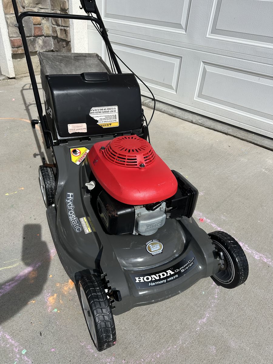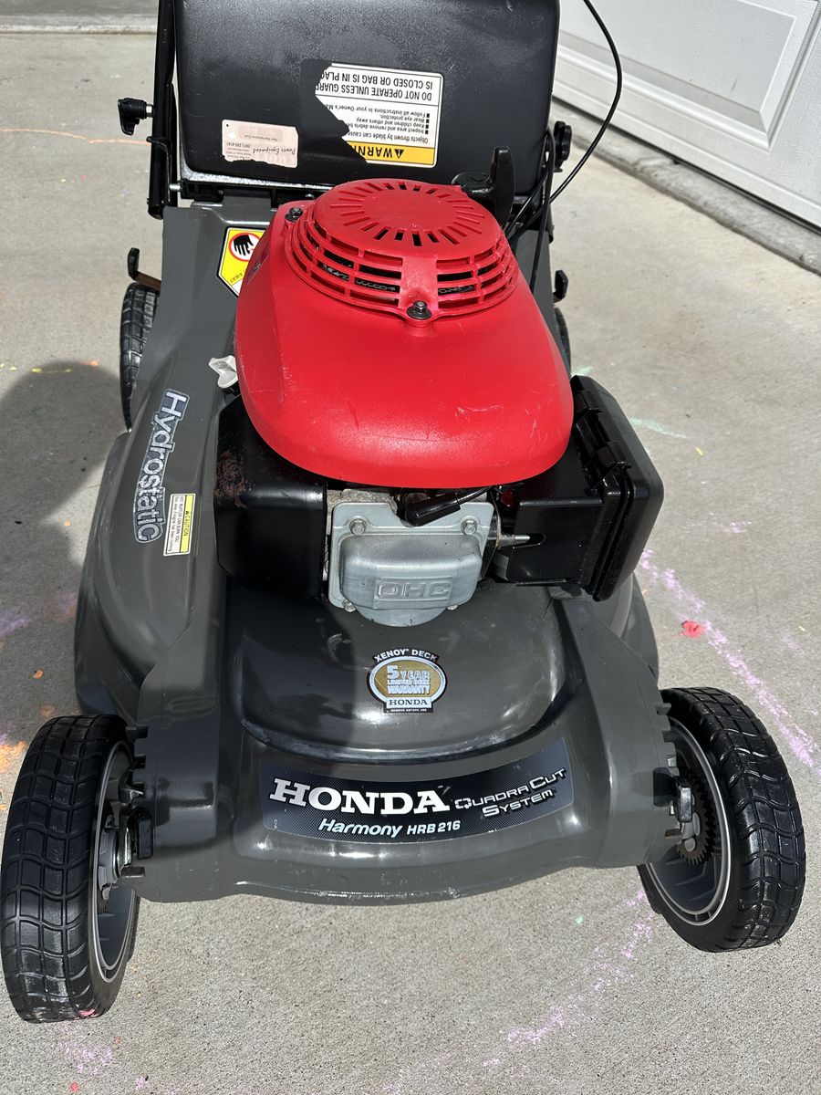 VenmoExcellent condition Honda Harmony HRB216 Hydrostatic mower. These hydrostatic Hondas are hard to find and are considered some of the best push mowers Honda ever made.