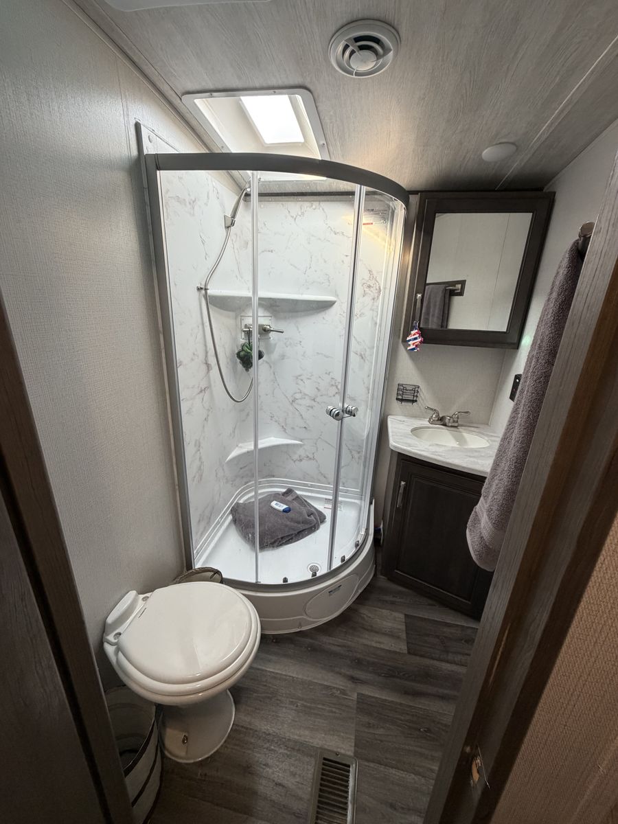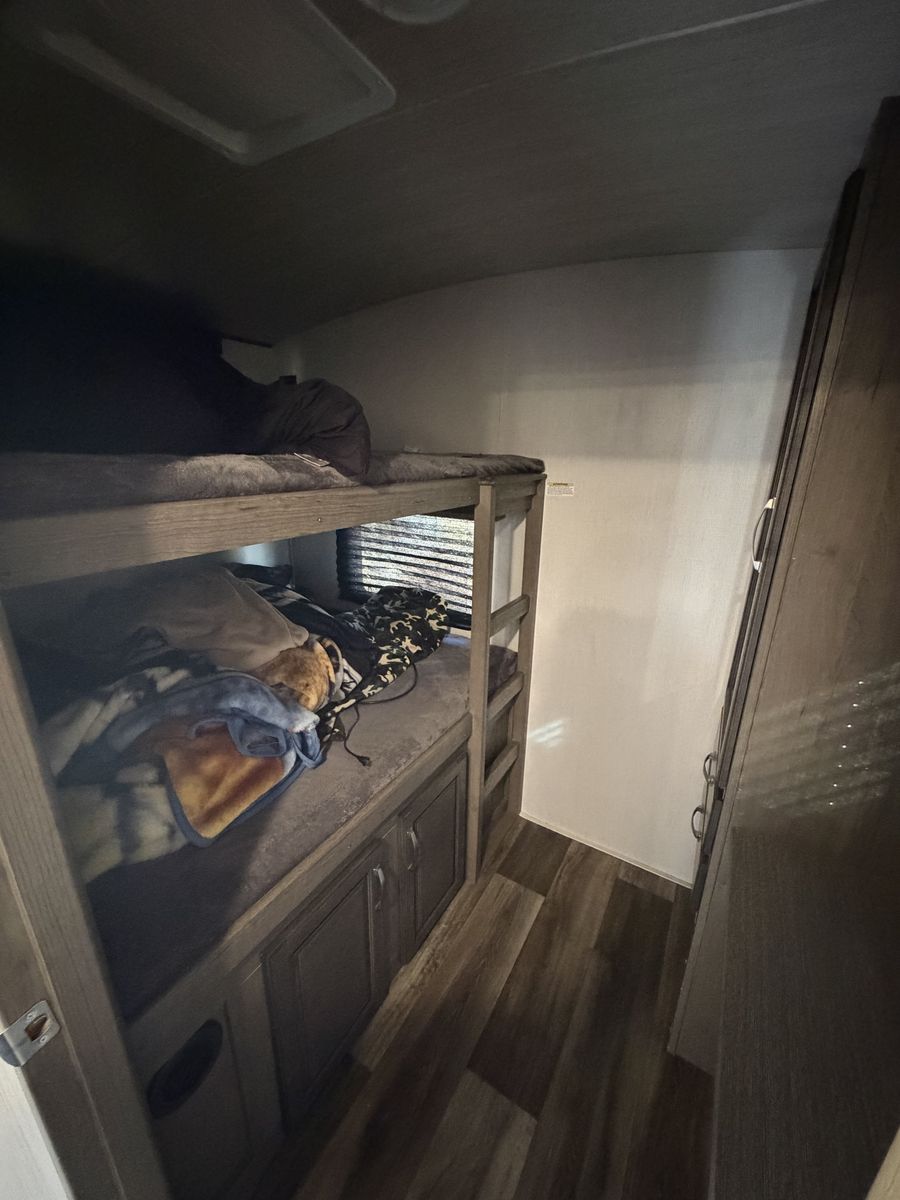 2022 Keystone Cougar 31BHKWE 1/2 Ton Towable Like new condition Auto Self Leveling Bigger bunks in the back California King Mattress from Costco up front White interior with island 2 slides 2 solar panels Inverter to run things without generator Touch screen panel Tall ceiling Rear backup camera