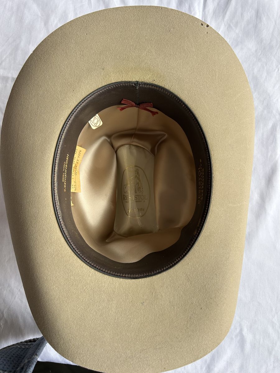 VenmoVintage Resistol Self Conforming XXX Beaver Felt Cowboy Hat Long Oval 7 1/4 Has some tiny moth chews on brim, look at the pictures, cash or Venmo only.
