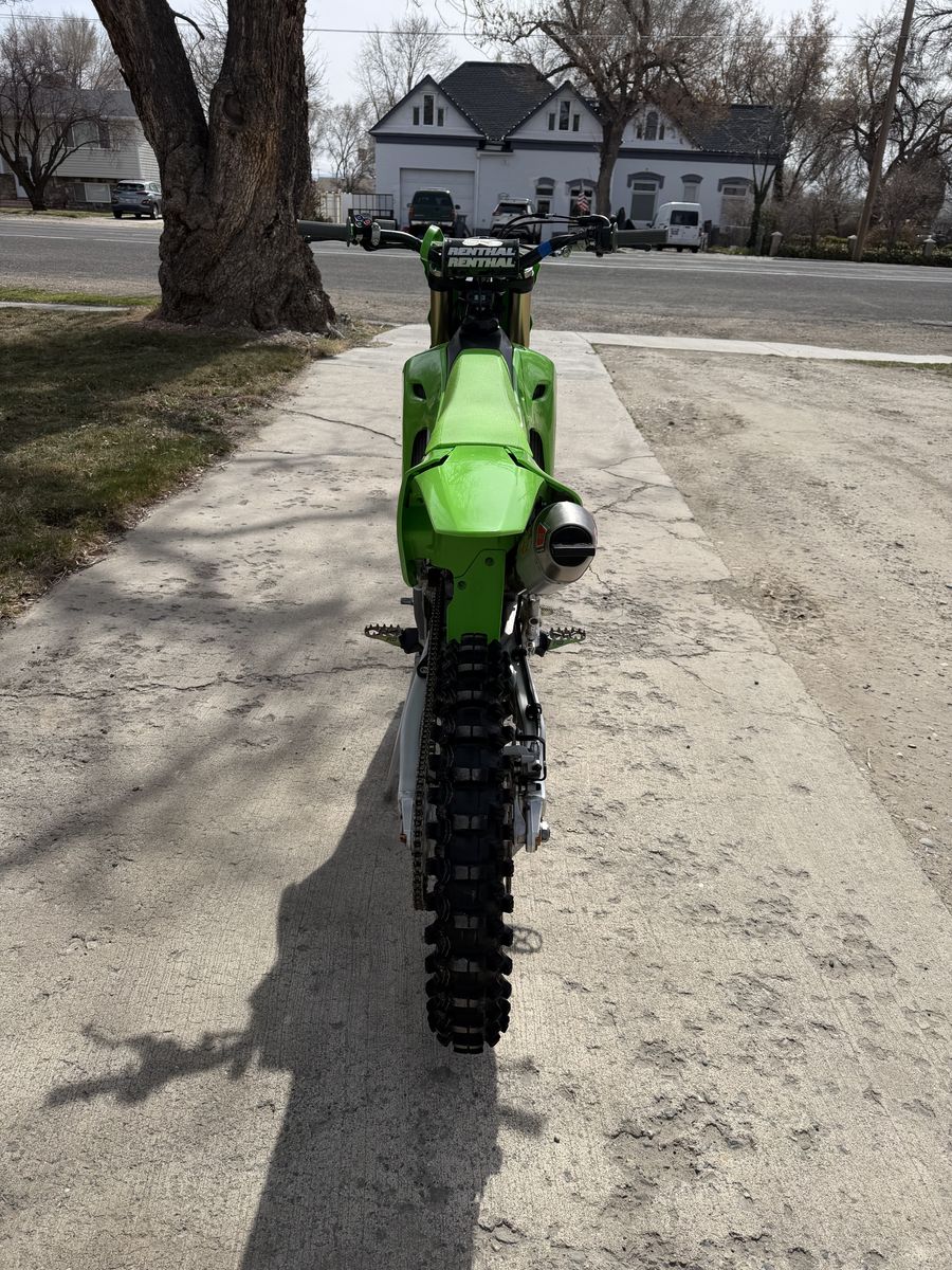 VenmoSelling 2025 Kawasaki 250. Has been well maintained and runs flawlessly. Just getting a new bike so time for this one to find a new home. It has been maintained extremely well with oil changes every 2 hours and air filter after every ride. The bike has 48.8 hours on it now and runs strong. Has brand new plastics, grips, levers, chain & sprocket. Tires have about 2hrs on them basically new still. Bike has No issues at all. Has some extras such as pro circuit exhaust, titanium foot pegs, acerbis chain guide, skid plate. Does come with stock parts as well. Title in hand. Not willing to take trades or low ball offers. Please call or text with questions or reasonable offers.