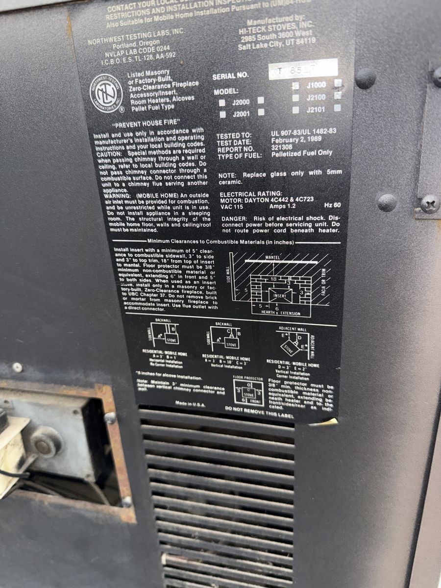 ZellePellet stove Great for heating up to 1,800 square feet. Has a heat output of 34,000-36,000 BTUs. Hopper holds about 37 pounds pellets. Good for keeping warm during winter! Also comes with a can of pellets, fireplace utensils, and exhaust pipes. $600 obo It also comes with a big can of pellets, fireplace utensils, and an exhaust pipe
