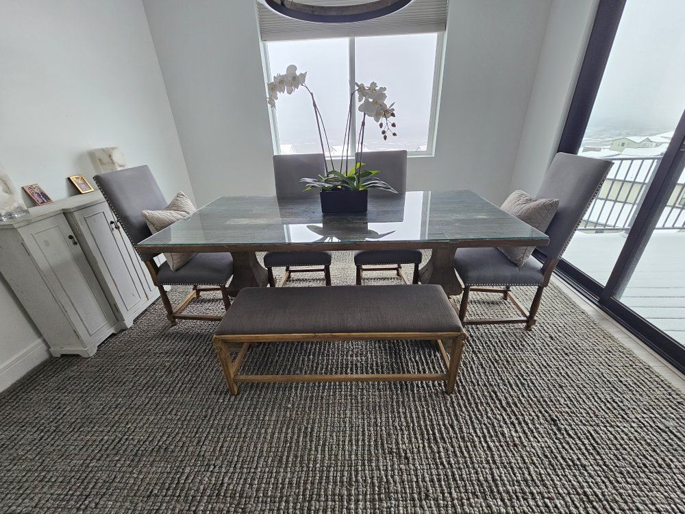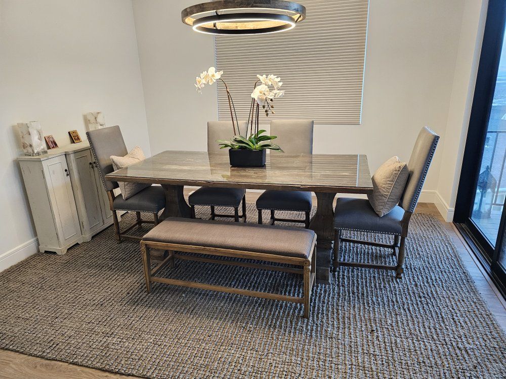 VenmoTrestlewood table, Connor dinning chairs and bench