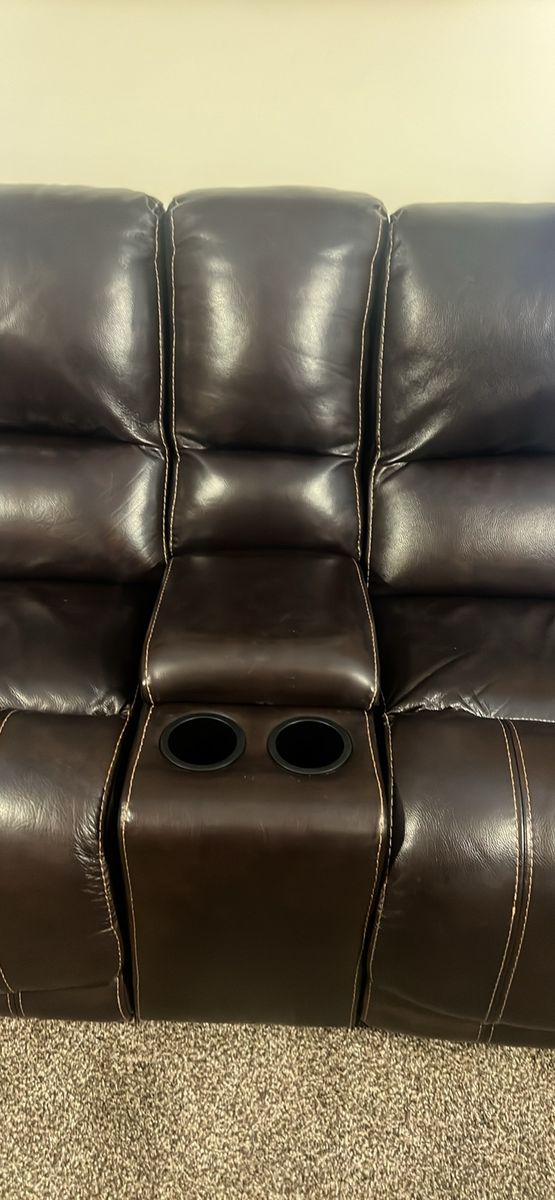 VenmoBrown console to reclining sectional. This is an extra middle section with two cup holders and a storage compartment. Storage has a USB charging port, super handy for phones or tablets. Material is a nice leather-like finish. Brand new! at RCWilley $450