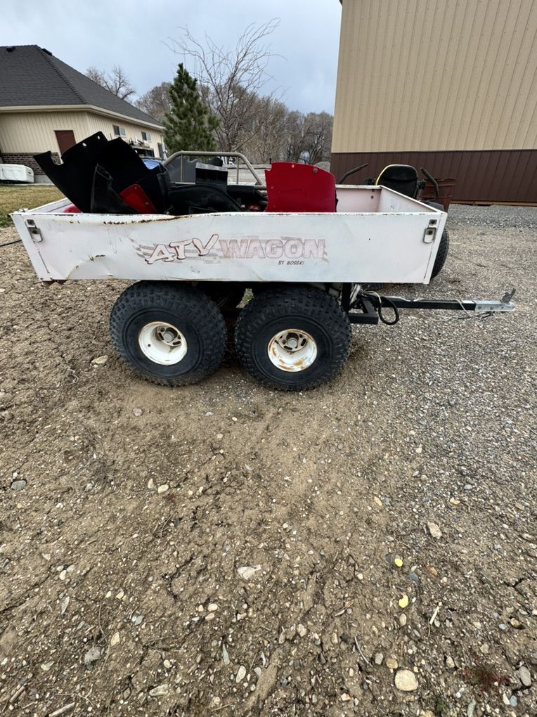 VenmoBosski ATV wagon tandem axle trailer with electric brakes and electric hoist. The bed is 3’9“ x 6‘. needs a little work. $950 OBO.