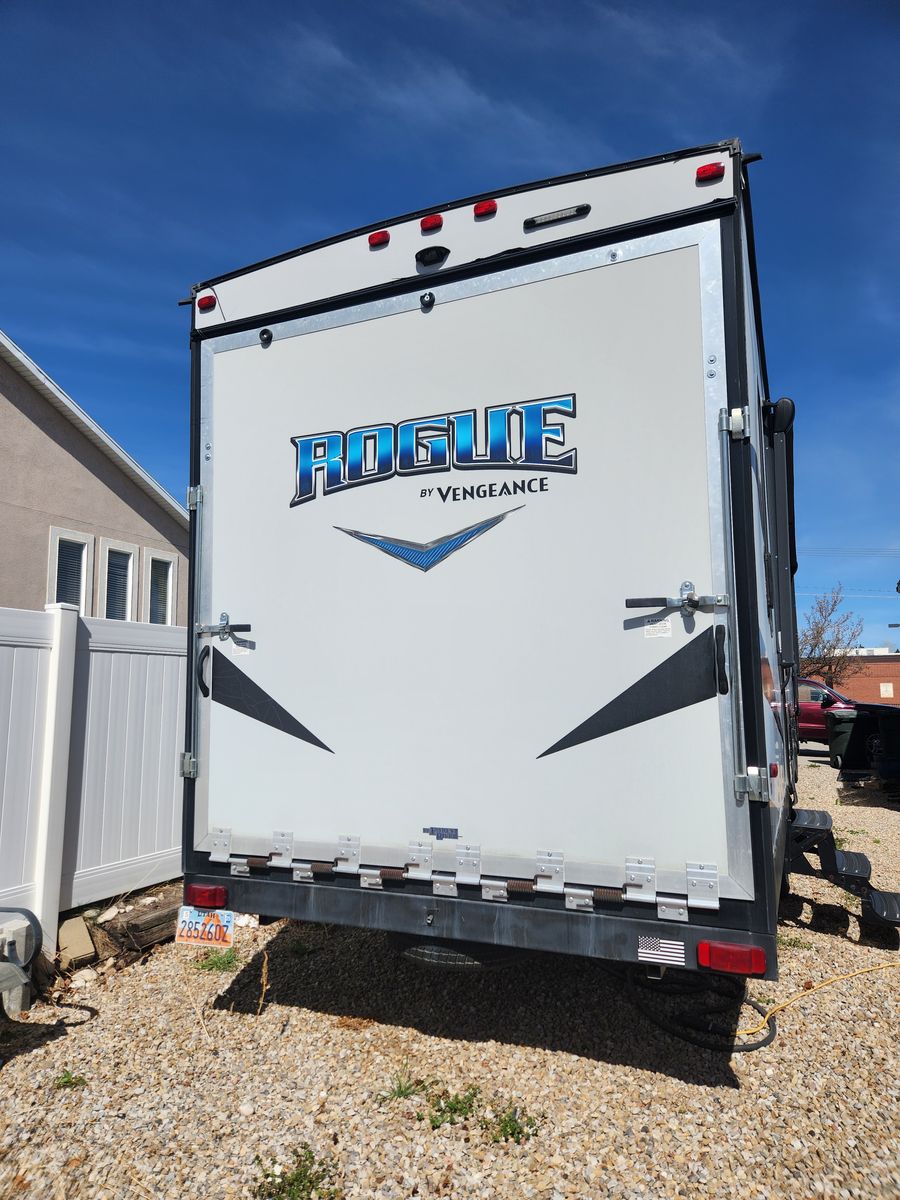 2019 Rouge Vengeance toy hauler. Model 311a13 38ft Wheel with 13ft garage. Slideout with reclining sofa. Onboard generator with 31.1 hours. Dual AC. Dual bunks in garage, loft bunk in coach. Queen master bed. Onboard fuel for toys. Patio gates for ramp. Love the trailer, just have not used it as much the last few years.