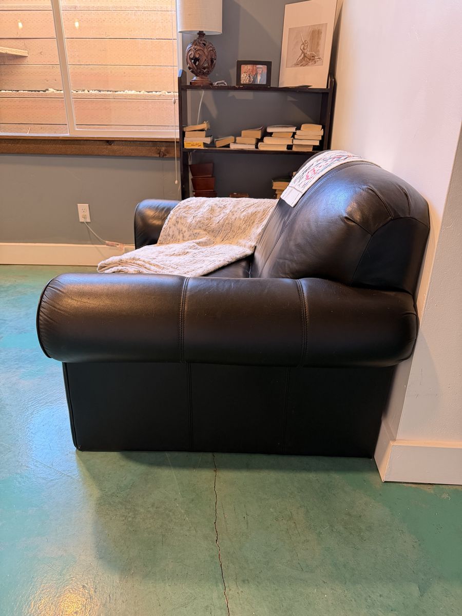 ZelleCozy double seat leather chair. It does have legs, they're just not attached. $150 obo