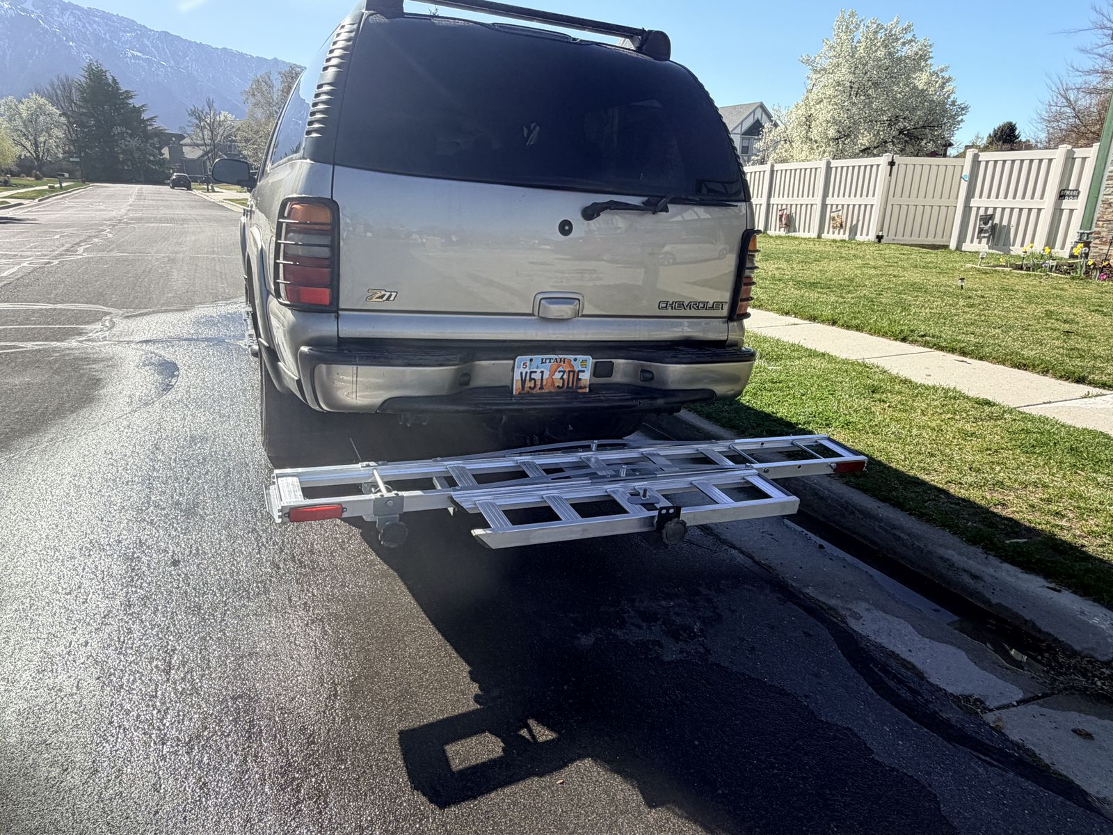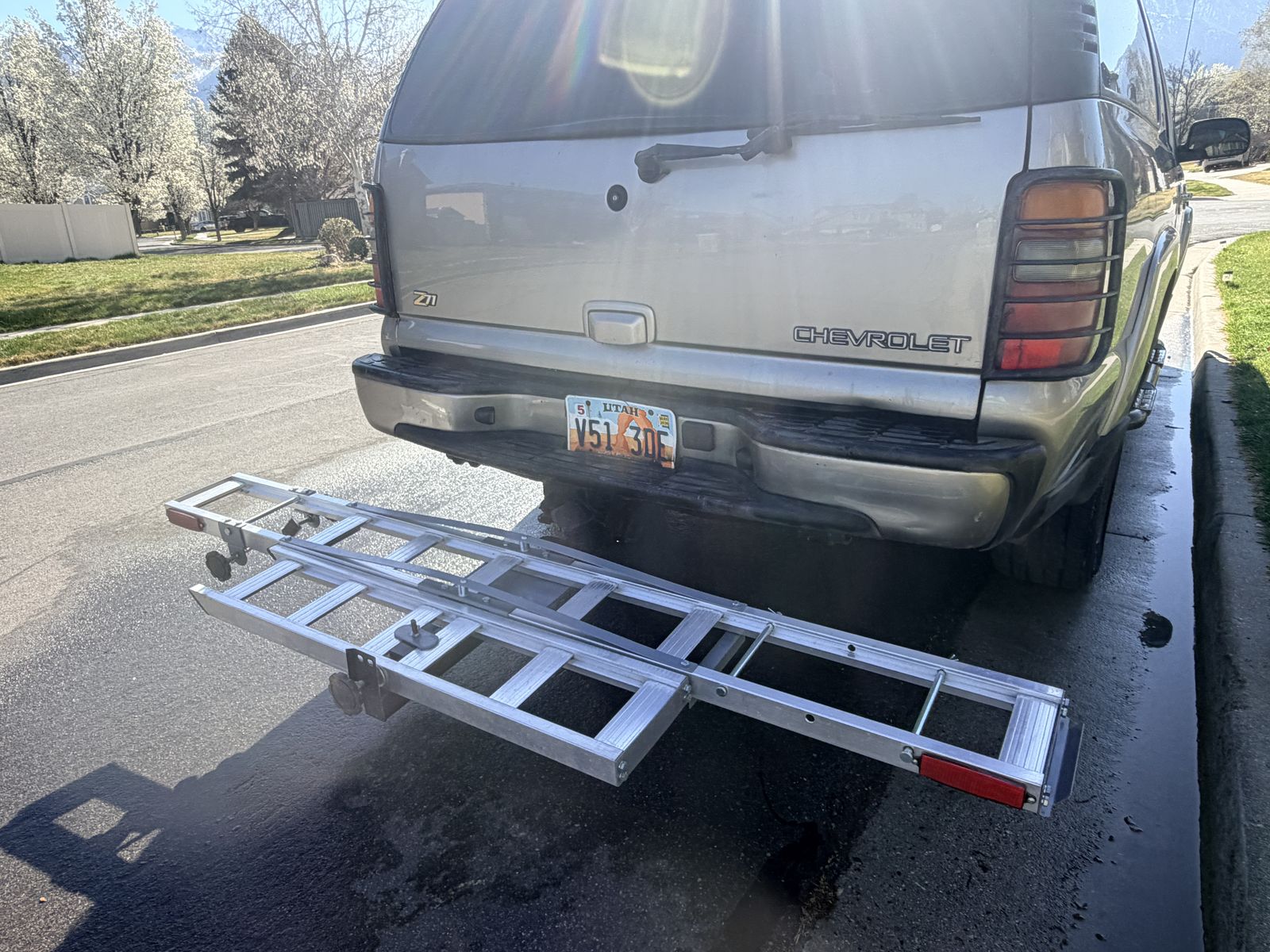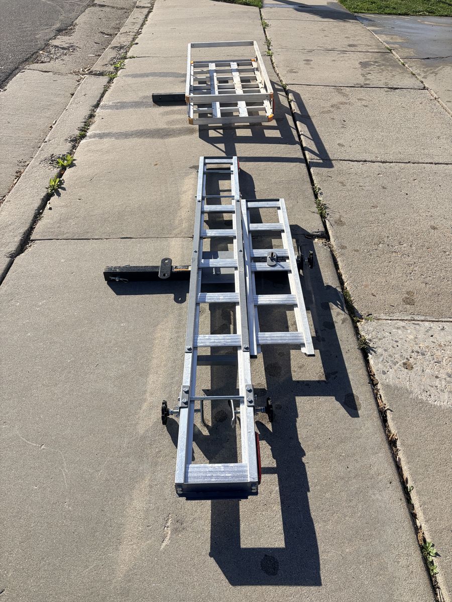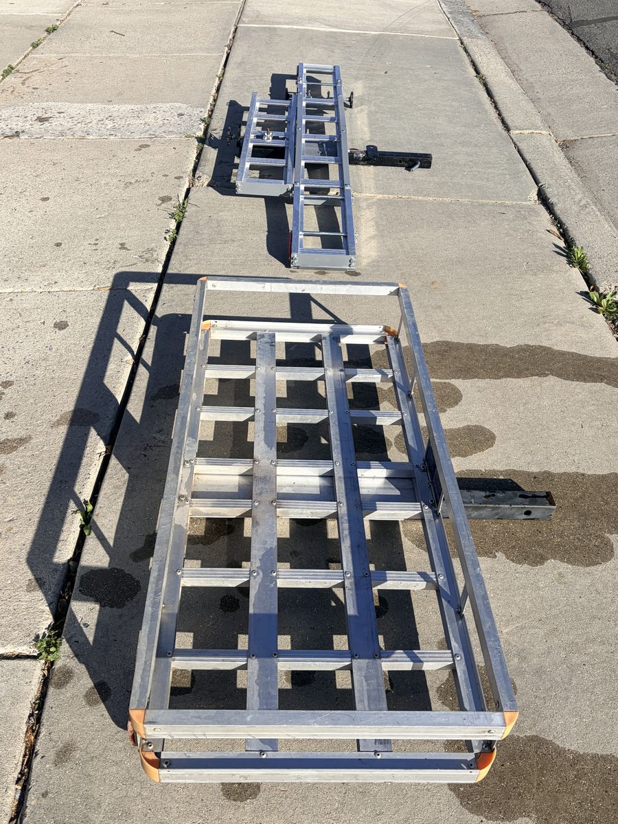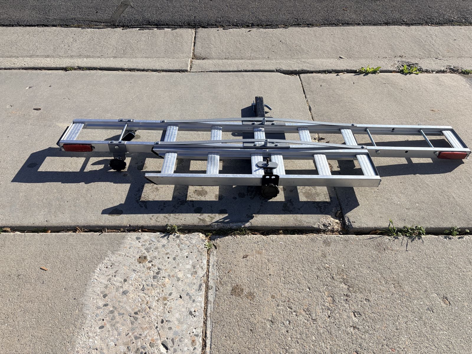 Two hitch attachments included: Cargo box carrier & Electric bike rack