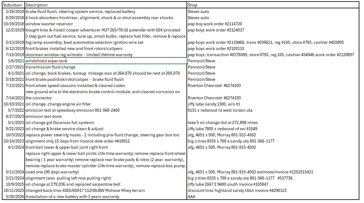 Second owner. This Suburban has been our family’s main camping, and boat-hauling truck for years. It has never let us down — whether on mountain roads, rough terrain, or slippery boat ramps. In 4x4 high or low, this truck is a beast.