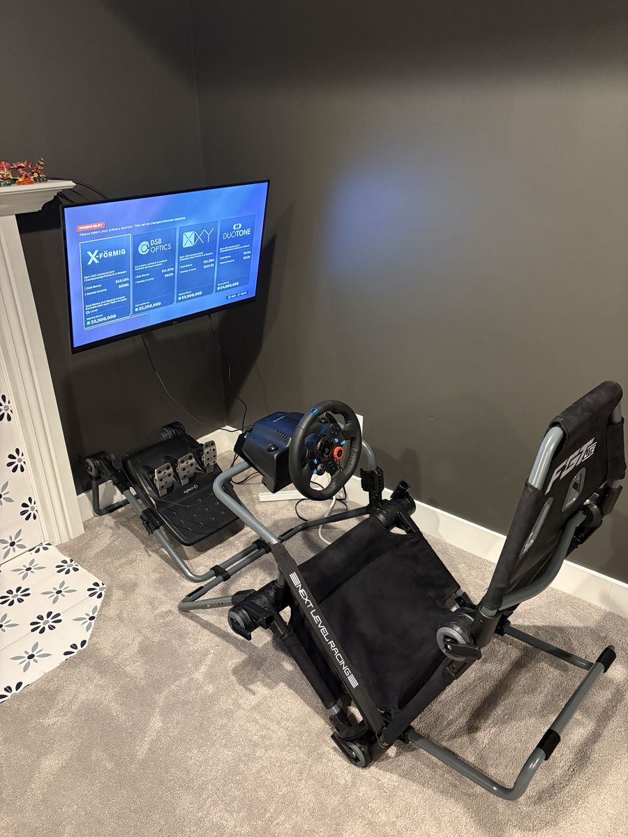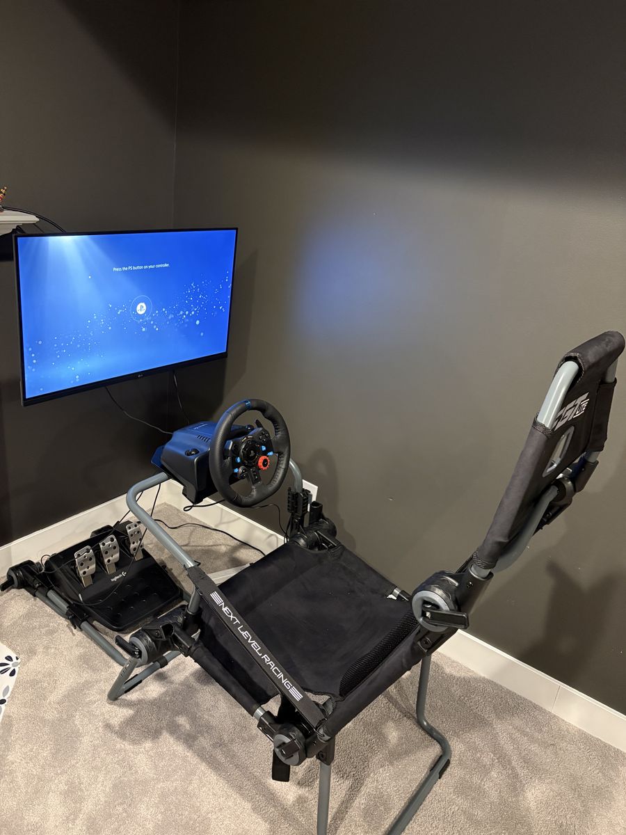 VenmoComplete sim racing set up Logitech g29 new used for only a month Logitech g29 pedals Next level racing F-Gt lite racing cockpit Tv not included Barley used Works on ps5 and pc Used for about a month I am upgrading and need to sell for more money shoot me an offer