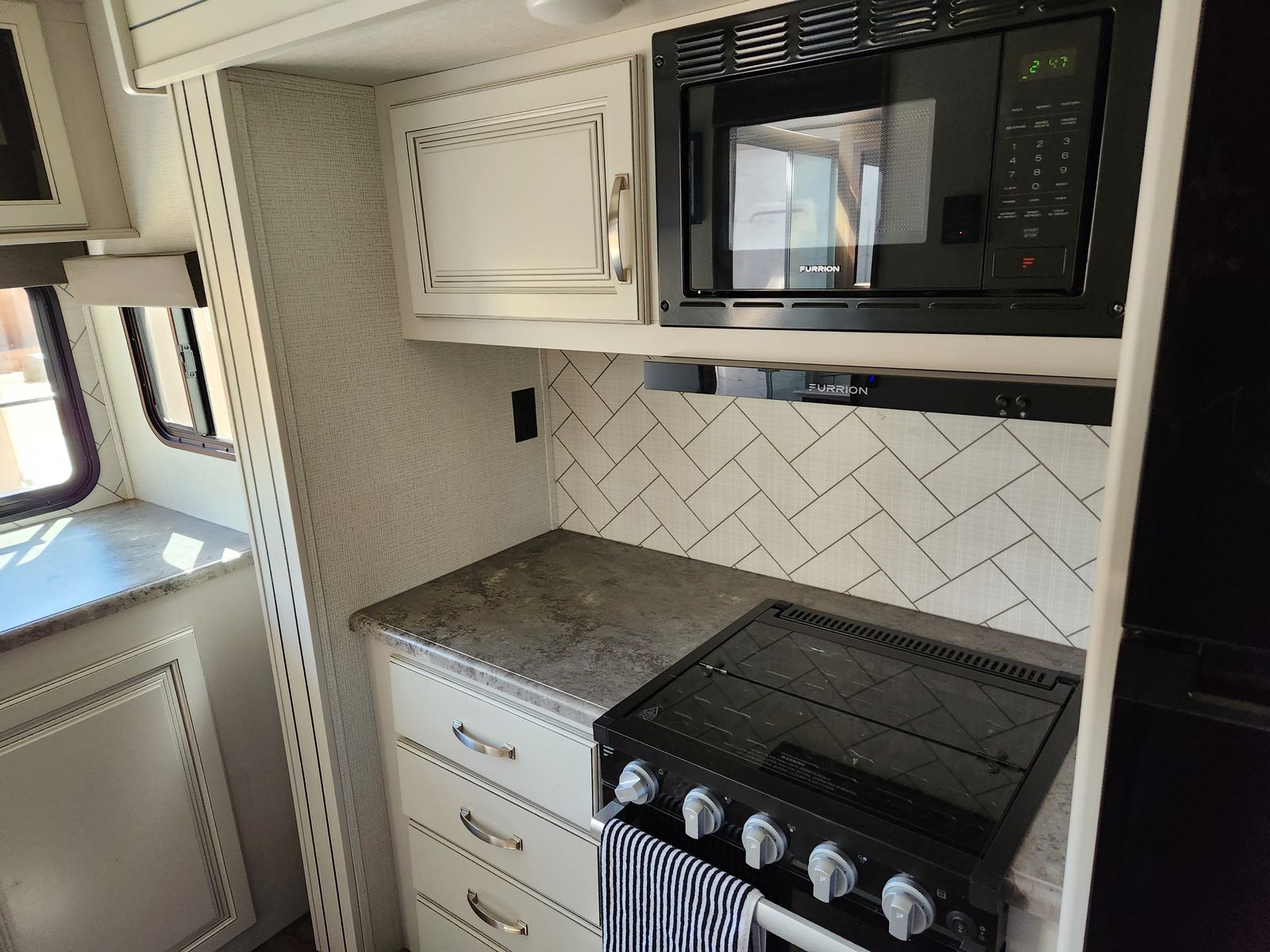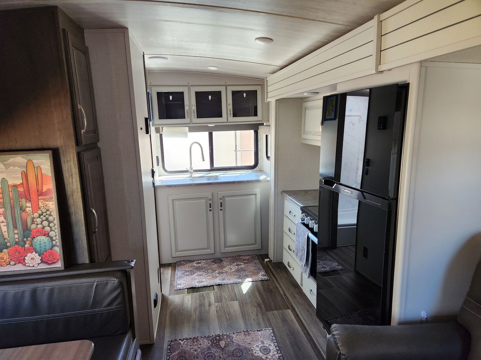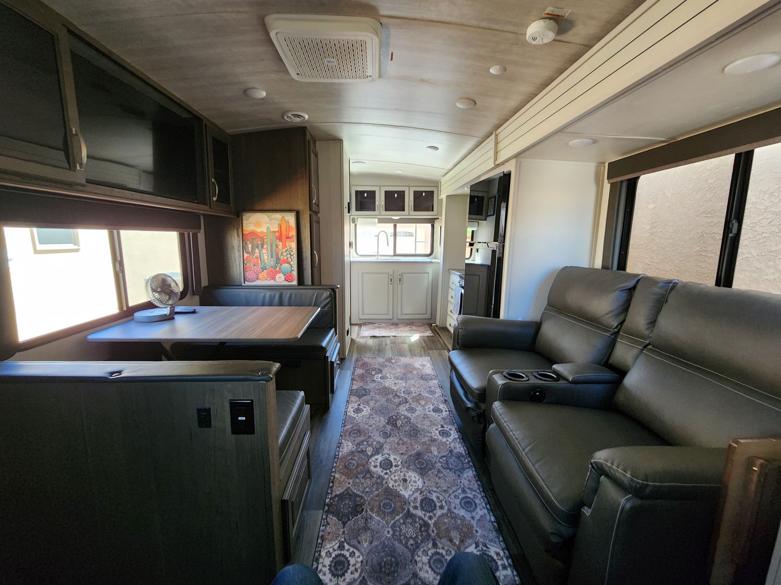Features include a rear kitchen, 70"x80" king bed with 12" Brooklyn Bedding mattress, theater seating, 40" TV, 12V fridge, 200 W solar, and a tankless water heater. We have highly maintained this RV and is turn-key ready.