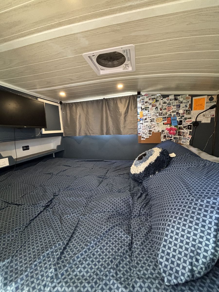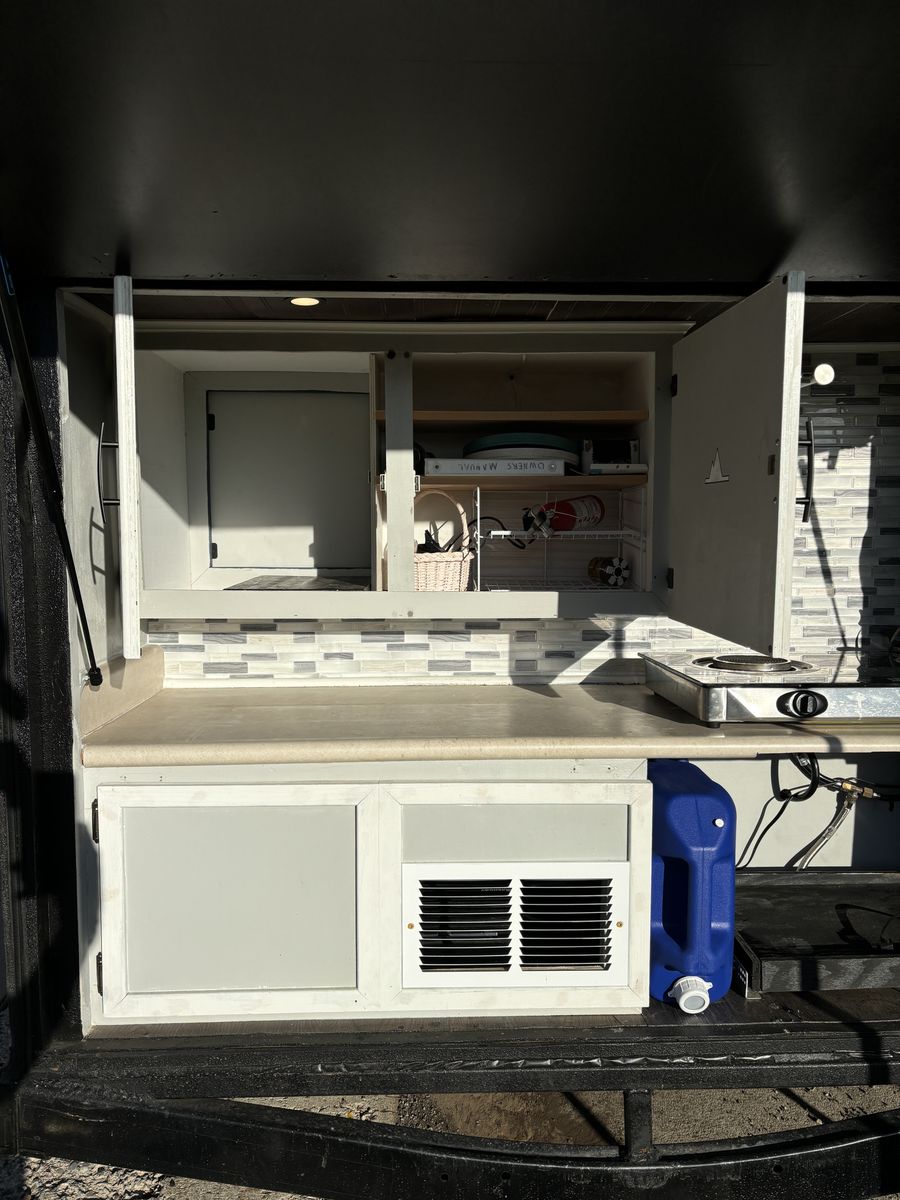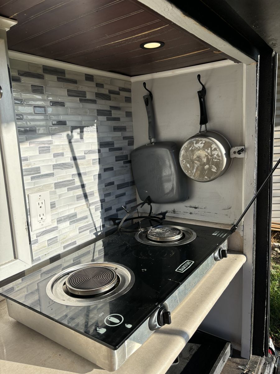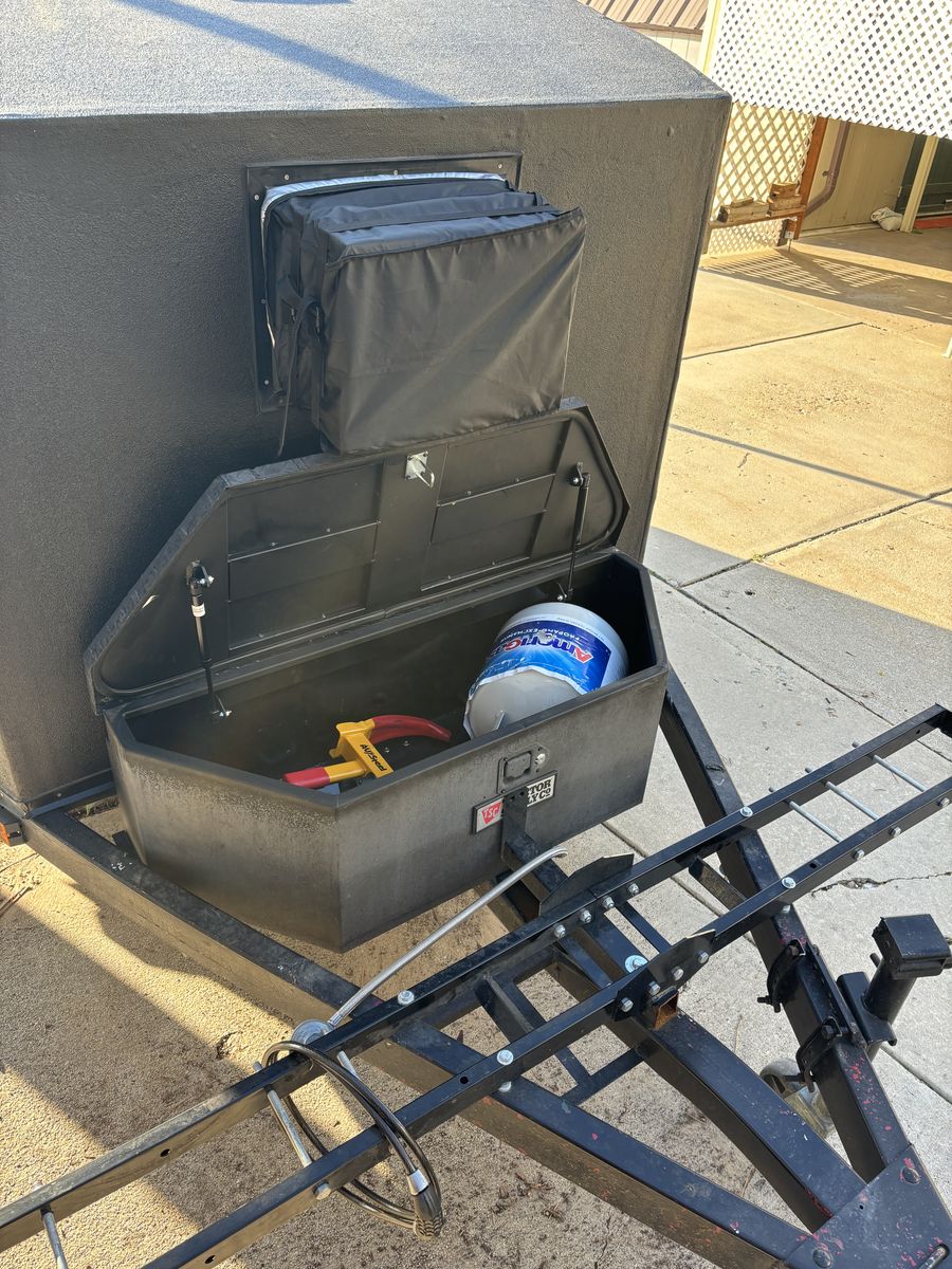 ZelleThis is Jasmine, our home for the last 3 months. She was originally a boat trailer until she was made into a home. Everything has locks - keeps everything super safe. Here's some specs: