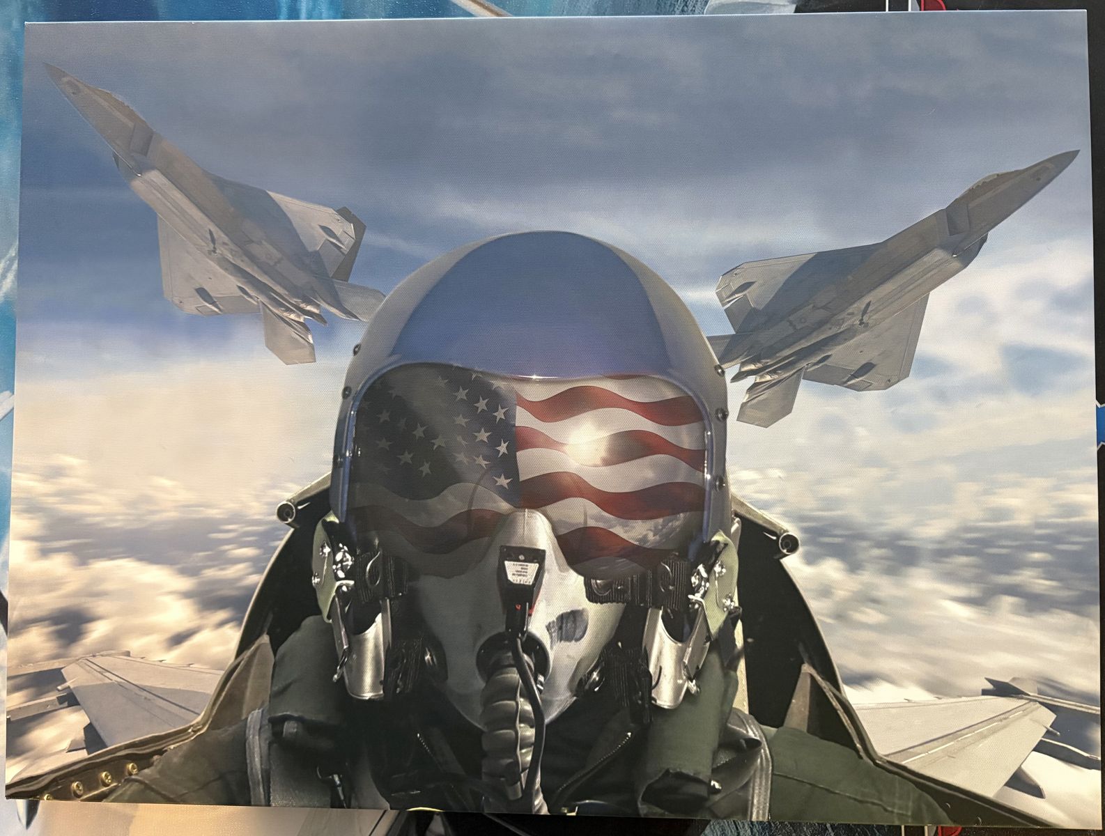 Includes: • Top Gun canvas – 30” × 22” featuring fighter jets and the Top Gun theme • Fighter jet canvas – 23” × 17” featuring a pilot and modern fighter jets