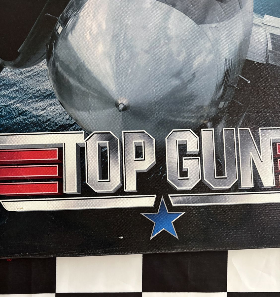 Both are stretched canvas prints and ready to hang. Clean and well kept. The larger Top Gun canvas has one very small white dot (minor and barely noticeable), otherwise both are in excellent condition.