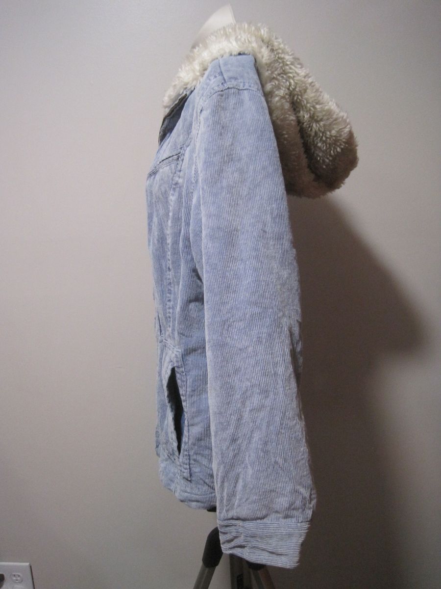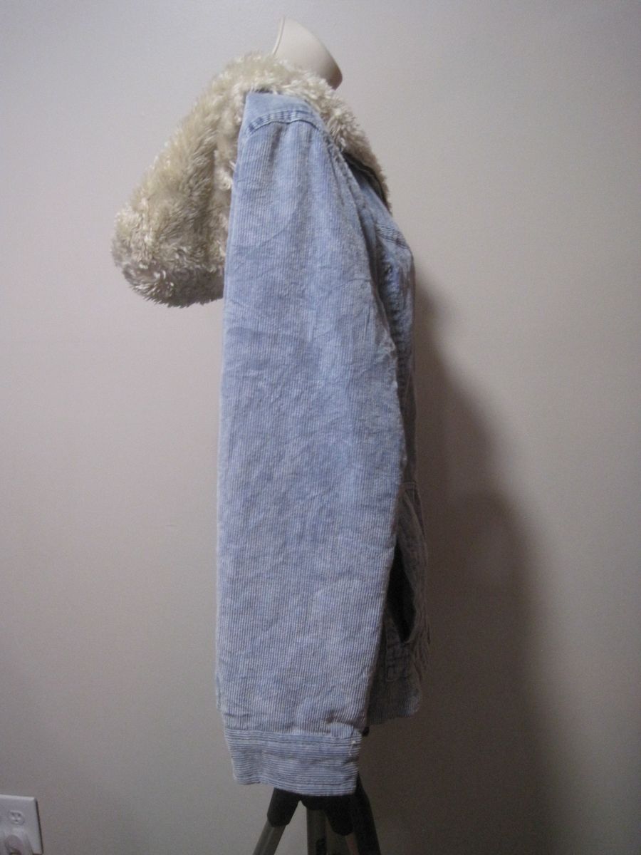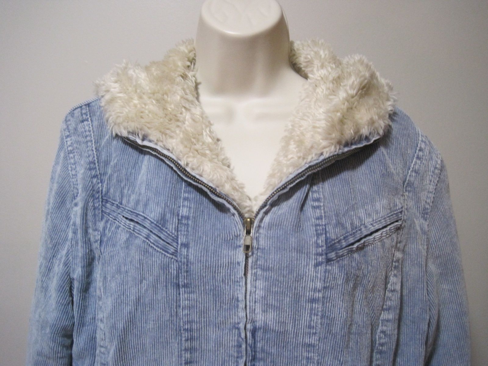 The Northcrest Women's Medium Light Blue Corduroy Hooded Coat Jacket is a stylish and versatile outerwear piece perfect for winter, fall, and spring. Made from cotton corduroy with a polyester lining, this mid-length jacket features a zip closure, hood, and pockets for added convenience. Ideal for travel, casual outings, or workwear, this vintage-inspired coat is designed for comfort and style. The classic light blue color makes it a timeless addition to any wardrobe, while the regular fit ensures a comfortable and flattering silhouette.