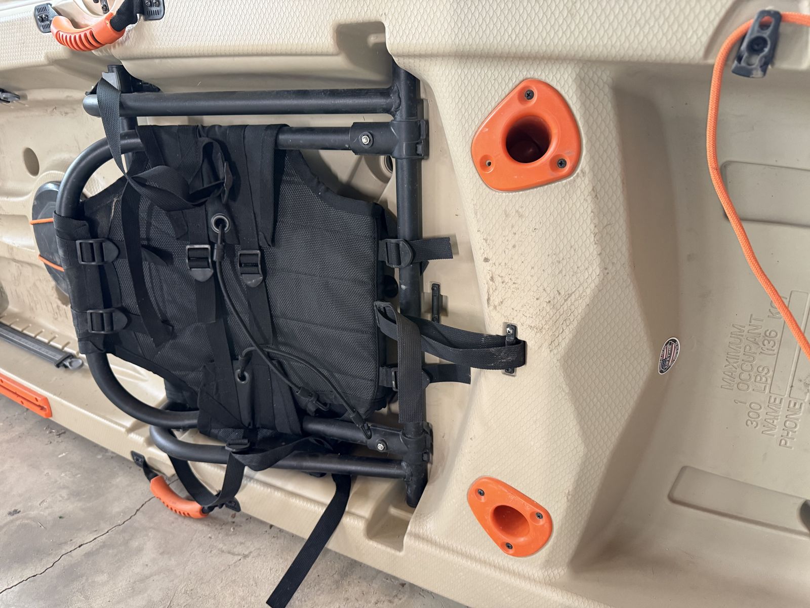 It’s a very stable kayak that’s great for lakes, reservoirs, and casual fishing. Has been used only in Utah at Bear Lake, Causey, Uintas. The framed stadium-style seat is extremely comfortable compared to standard kayak seats.