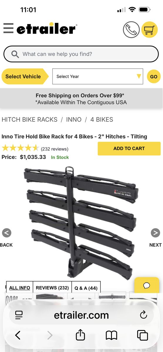 Inno makes one of the best racks on the market. This will haul up to 4 heavy bikes and is adjustable in 4 positions. Cost new is $1050 plus tax Buy it for half price just in time for spring $550 OBO