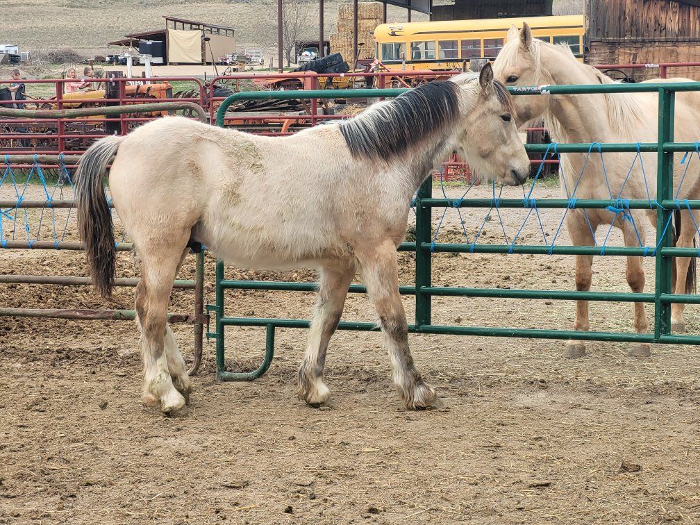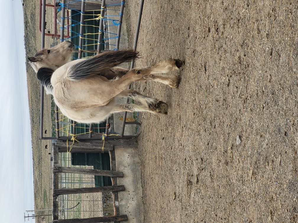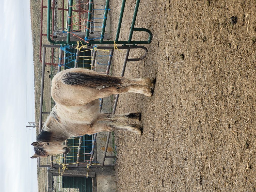 UPDATE: HE IS SCHEDULED TO BE GELDED ON SATURDAY APRIL 4TH. 1-year-old Gypsy Vanner quarter horse cross stud Colt untouched, willing to geld for buyer. Looks like he will turn out to be a silver buckskin. Dad is a registered gypsy named Lenka's Silver Prince, he carries the silver gene and passed it on this Colt. Mom is a registered half quarter horse named Lady Oriana of the Dawn, she is out of Ain't Seen Nothin Yet. She has Dash for Cash and Frenchman's Guy in her on her dad's side. Mom is pretty easy going and a smooth ride. call or text Grace at 435-720-2341