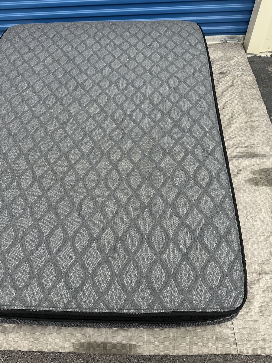 It is comfortable to sleep on. Medium plush. The mattress has the perfect balance of support and cushion. We just don’t need it anymore. It just needs a new home. It is smoke-free and pet free. It is a must-see. Please note that you will need a truck, trailer, or large SUV to transport the item home. Sorry, the bed will not fit in or on a car, van, or small SUV. Venmo or cash. $200.