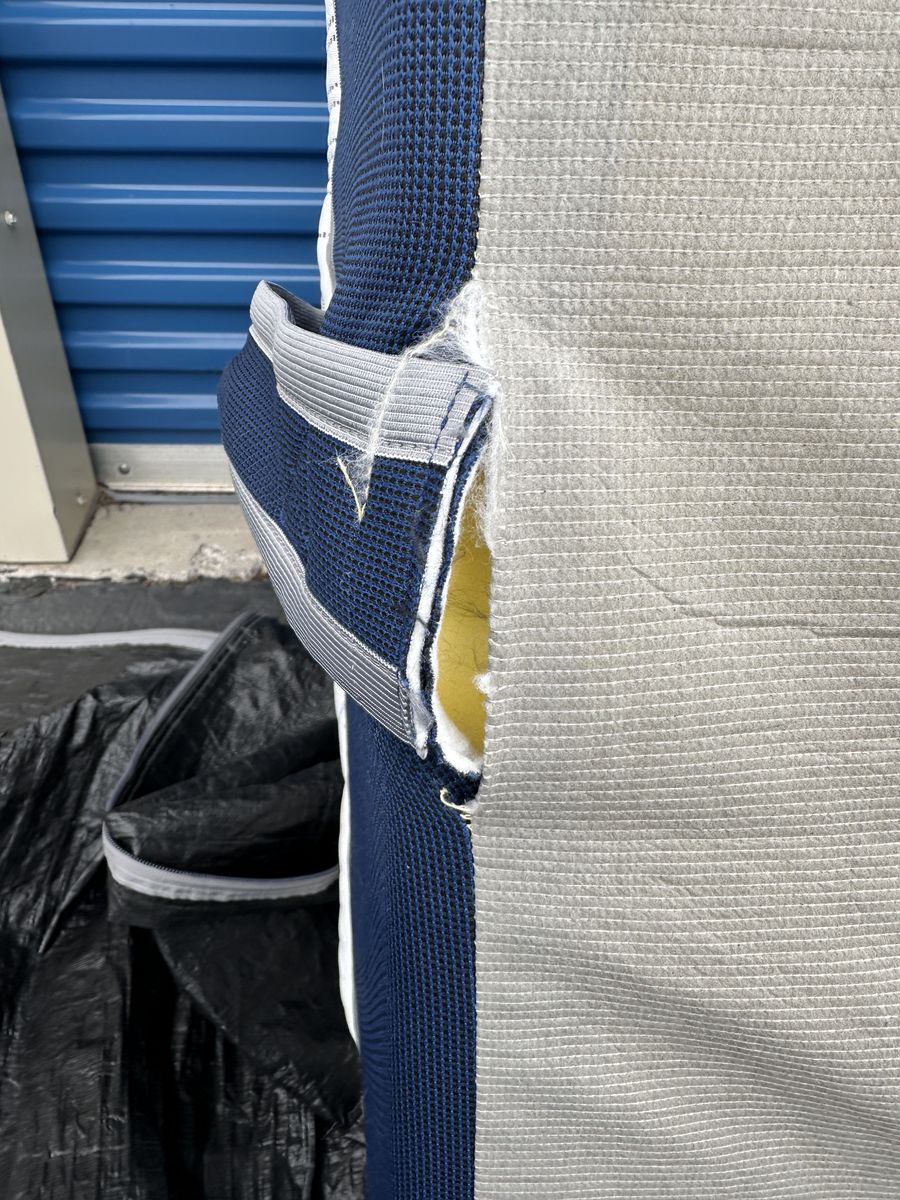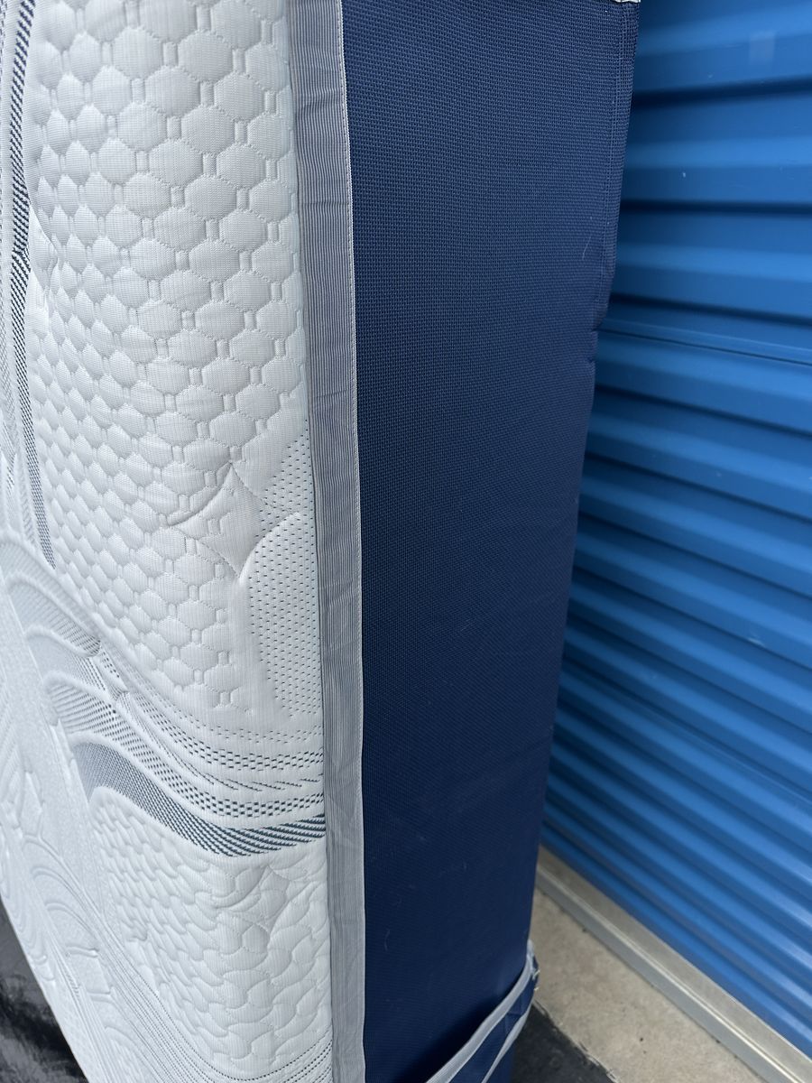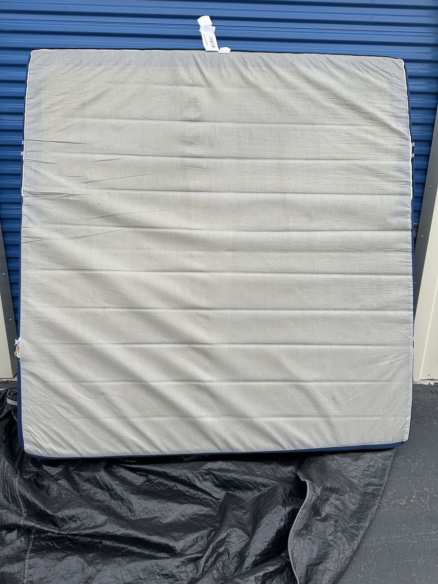 Check out this 14” Novaform Comfort Grande Plus king mattress. Overall, it is in like new condition. There are some signs of imperfections, some of the fabric by one of the side handles is ripped from moving, some signs of use, etc.