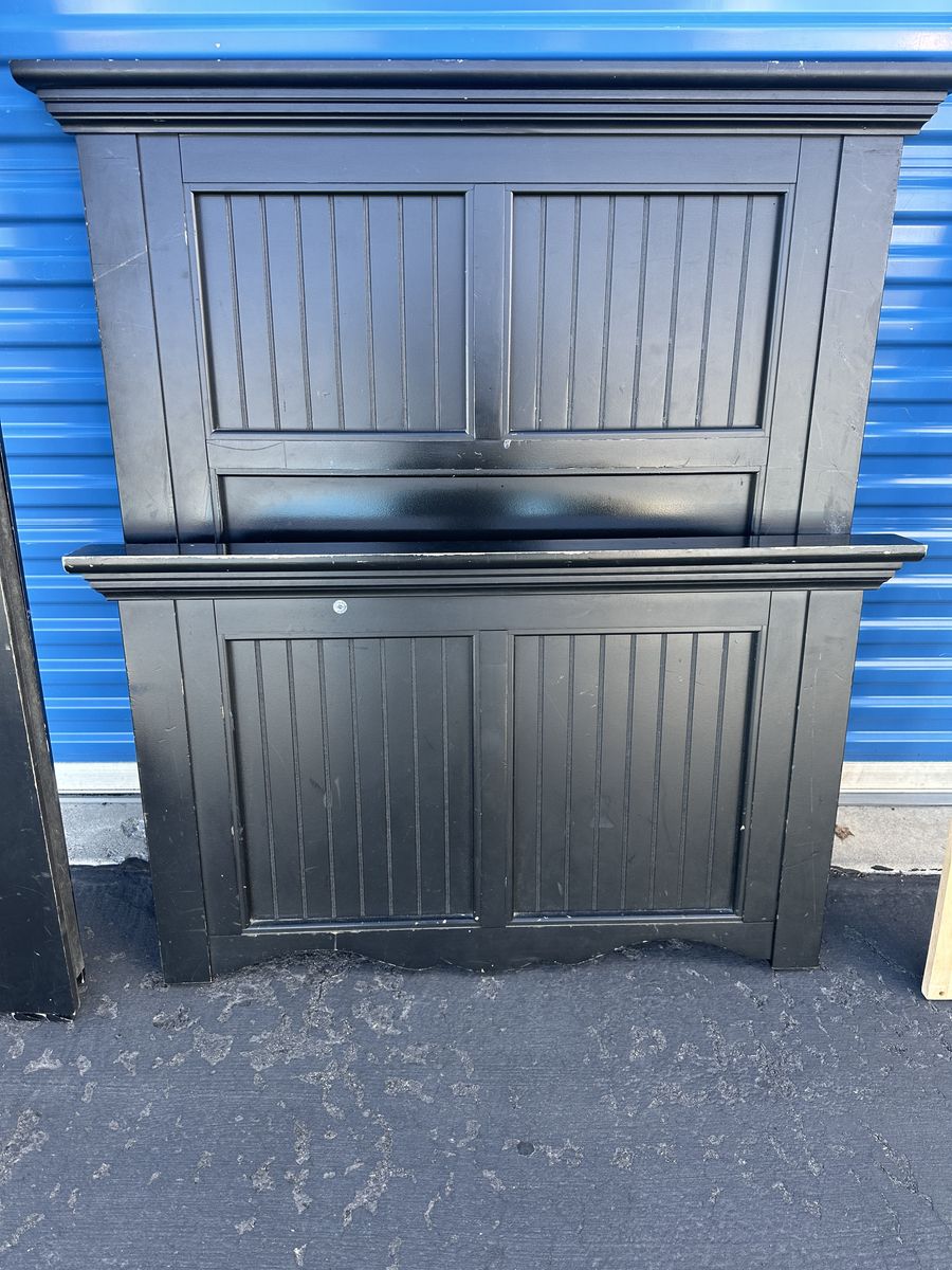 Check out this super cute twin bed. Overall, it is in good condition. There might be some imperfections from moving, a few scratches, dings in the wood, and signs of use, etc. You can easily refinish the bed to your liking.