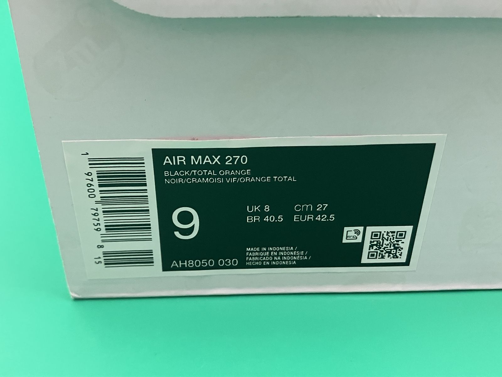 VenmoNike Mens Air Max 270 Shoes Black/Total Orange Size 9 AH8050-030. Like new condition, worn 1 time. Comes in retail box. Please message with questions.