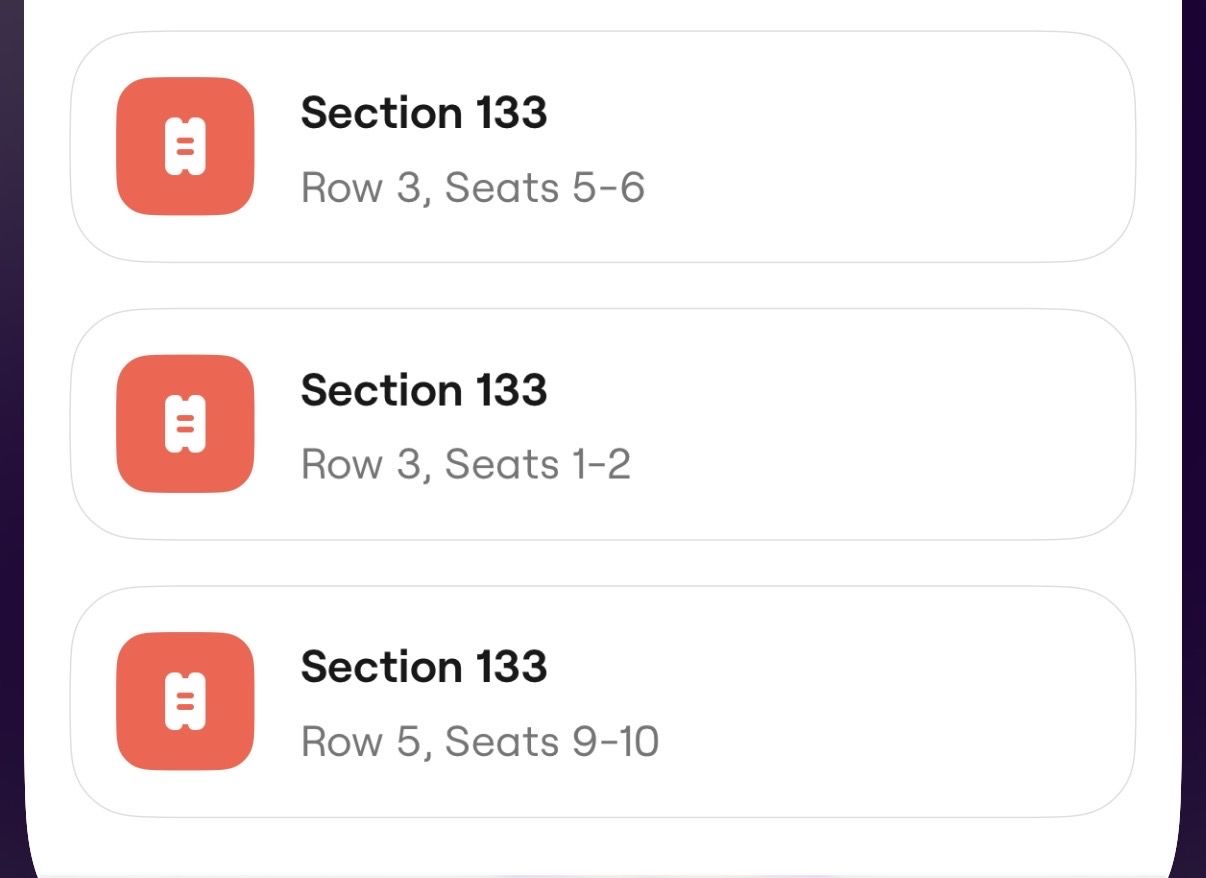 Row and Seats listed in photos Section 133 Row 3 and row 5 Close enough could be used for a group of 4-6 people