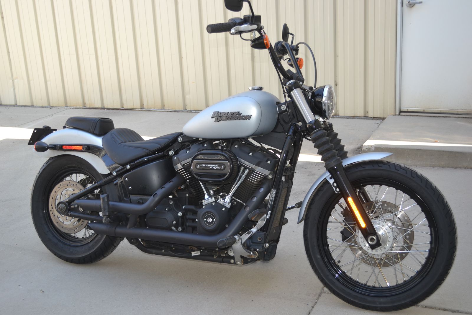 BRAND NEW FRONT AND REAR TIRES JUST INSTALLED. THAT IS AN EXTRA $700 VALUE! 2020 Harley‑Davidson Street Bob 107 with the torquey Milwaukee-Eight 107 V-Twin putting out over 100 ft-lb of torque for strong acceleration and easy cruising. Classic bobber style with mini-ape bars, solo seat, chopped fenders, and spoked wheels. Built on the Softail chassis with rear monoshock suspension, ABS brakes, USB charging, and keyless ignition.