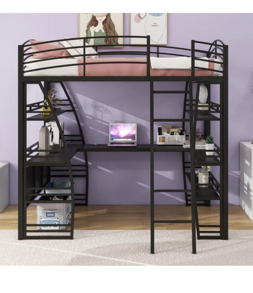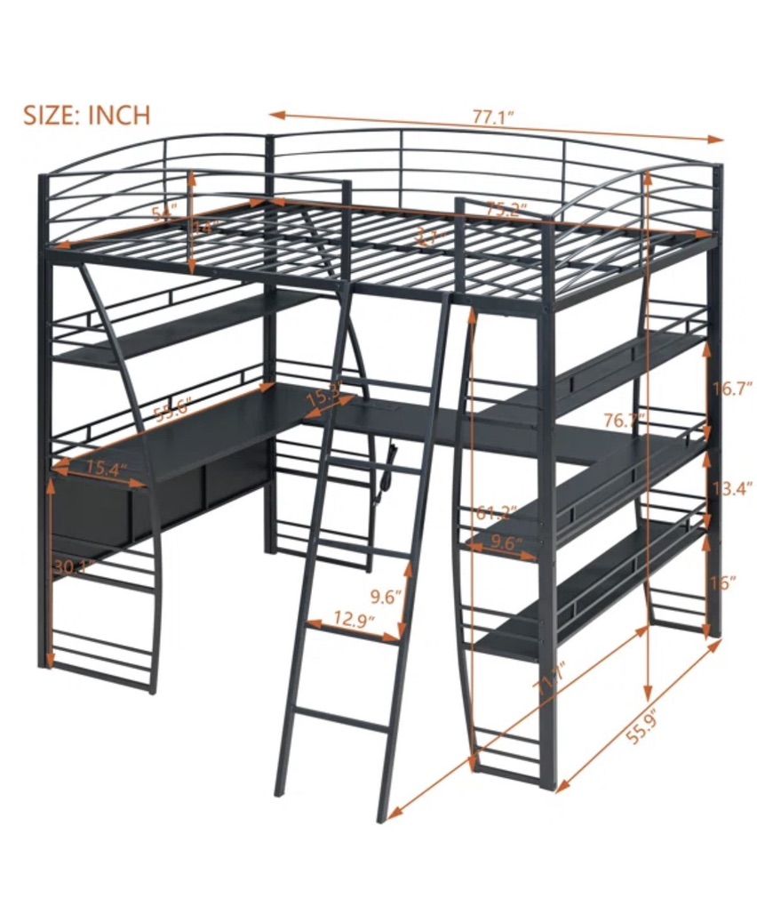 ApplePayDesk with Loft bed above. Bed frame is for a full size mattress. Mattress is not included. I’m pretty good condition. Was used for a year by my daughter in college.