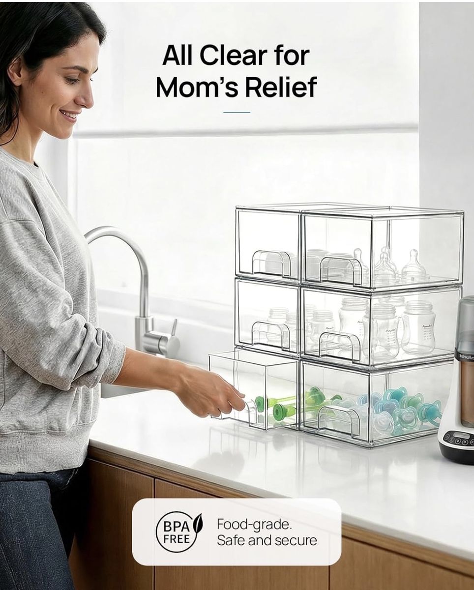 The clear acrylic design makes it easy to see what’s inside, and the stackable drawers help maximize space and keep everything neat.