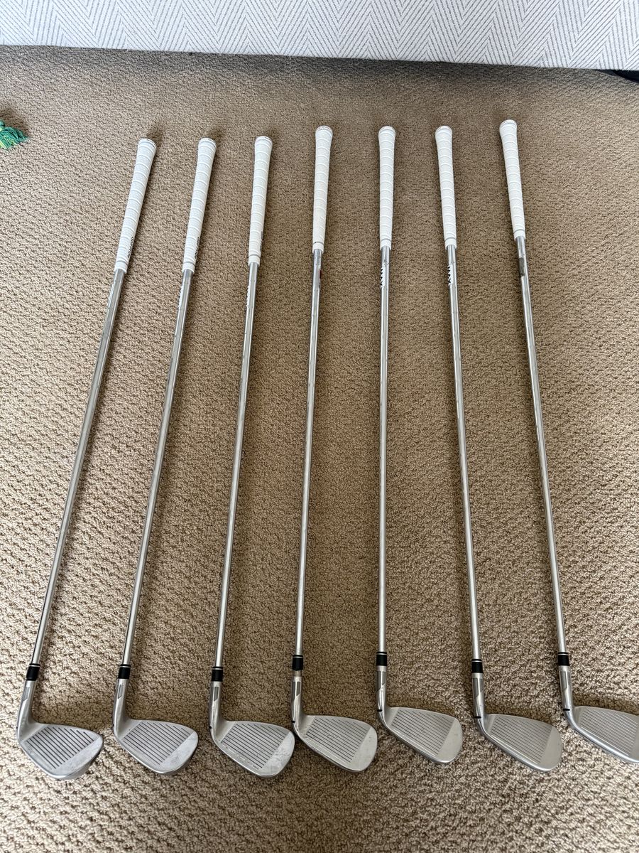 VenmoLeft handed Stealth Irons (Approach wedge through 5i)for sale. Extra stiff shafts. Have used these for three years and have loved them. Light wear on the club heads as they have been used. The club head on the 8i and approach wedge will need to be re-glued (showed in photos). At the beginning of last season, I put on some golf pride mid-sized grips, that still have a season or two of use. Ask me if you have any questions!