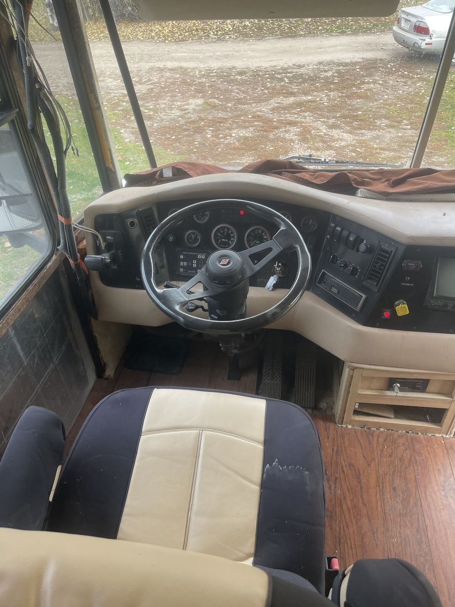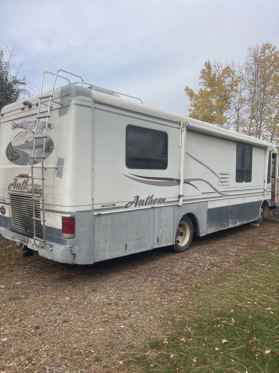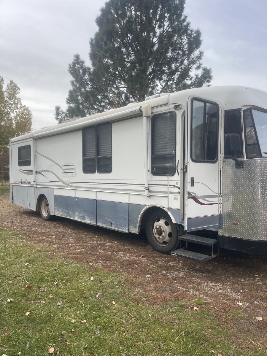 Venmo2001 Anthem RV 24 valve Cummins automatic Alison transmission. 35,000 miles. Motor has blow-by transmission leaks when you put it in reverse. Some interior roof leaks. Everything works on it but the water heater. Generator has about 500 hours. Brand new front tires. Good rear tires. Hydraulic leveling. 1 pop out. Asking price $4,000.