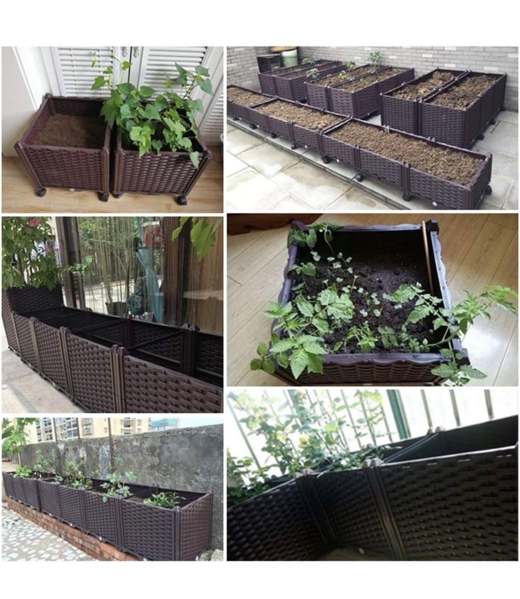 The raised design makes planting easier and keeps plants organized, while the durable plastic construction is lightweight and weather-resistant.