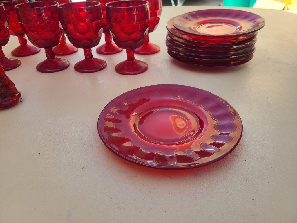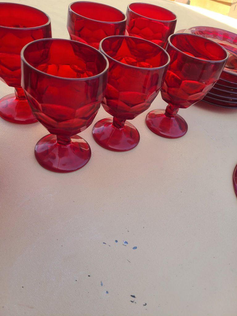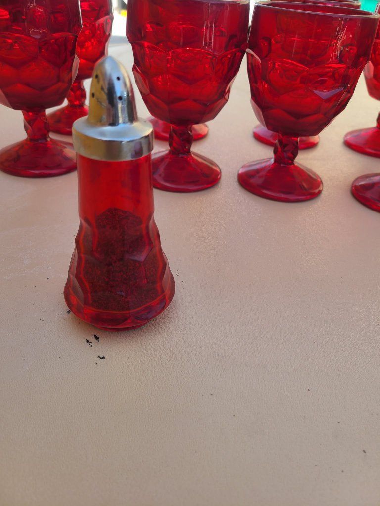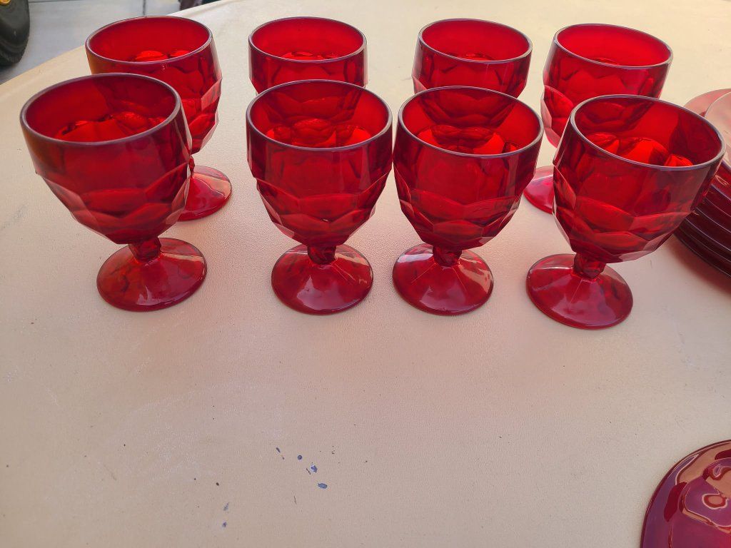 This set of 8 vintage Viking Glass Georgian Ruby Red Glass Goblets exudes a sense of elegance and sophistication. Standing at 5-3/4 inches tall, these goblets feature a beautiful Georgian style design and a striking red color. Made of glass with a production style of ruby glass, these goblets are a perfect addition to any drinkware collection. The vintage nature of these pieces adds a touch of history and charm to your table setting. Perfect for special occasions or everyday use, these goblets are a true treasure for any glassware enthusiast.