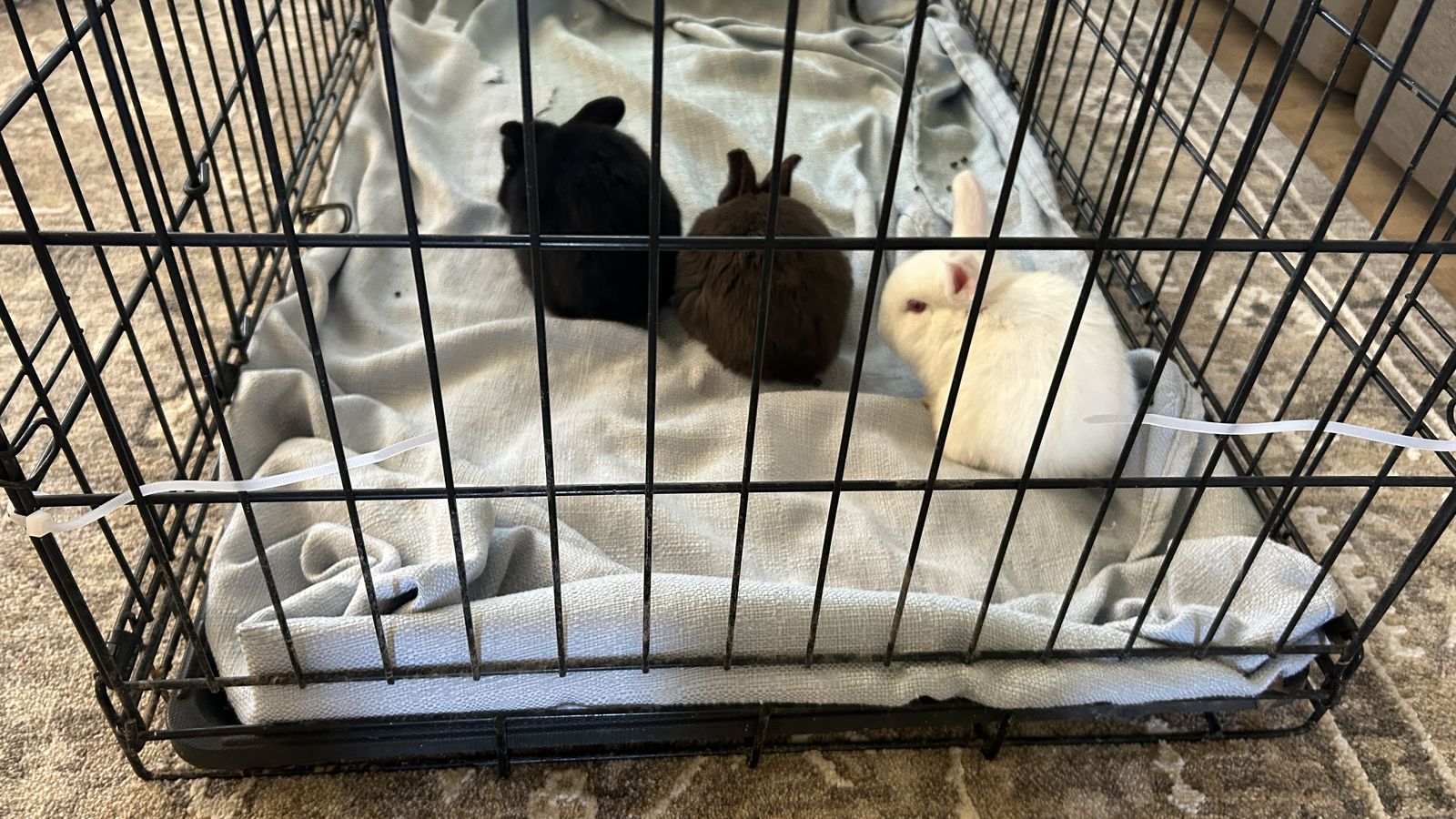 VenmoOur Mini-Holland Lop and our other bunny (upright ears) had babies again! We have four super cute little bunnies left! (1-Brown, 2-Black, 1-White) they have a borough system, so we don’t know exactly when they were born, but we’re guessing they’re about 6 weeks old right now They are totally comfortable with humans, and very playful. With the past 3 litters, about half of them have “lopped” after the first 8weeks or so. The other half of them have stayed with their ears upright. No way to tell this early on these ones! Also, at this age, we don’t know how to tell if it’s male or a female 🤷️.