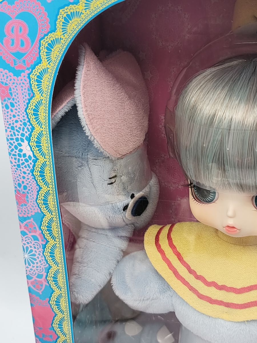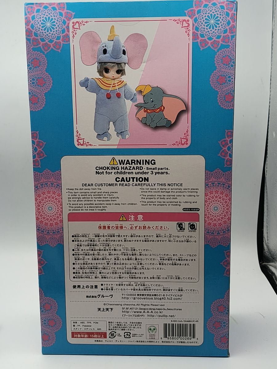 VenmoThe product is a 10" Disney DUMBO Groove Inc BJD doll with silver hair, straight hair type, and a light complexion. It is an articulated doll from the Pullip series, featuring the character DUMBO from the Disney franchise. This fashion doll is made of ABS, hard plastic, and plastic materials. It comes in its original packaging, factory sealed, and is suitable for all occasions. Created by artist Byul.