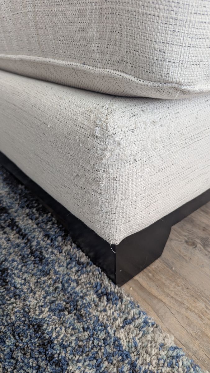 VenmoWhite couch 2 piece sectional with right chaise for sale. 96 inches long. Good condition with a corner where there is some cat scratches see picture 2. It is extremely comfortable and is in a smoke free home. Bought it at RC Willes 4 years ago for my sitting room. Changing my decor.