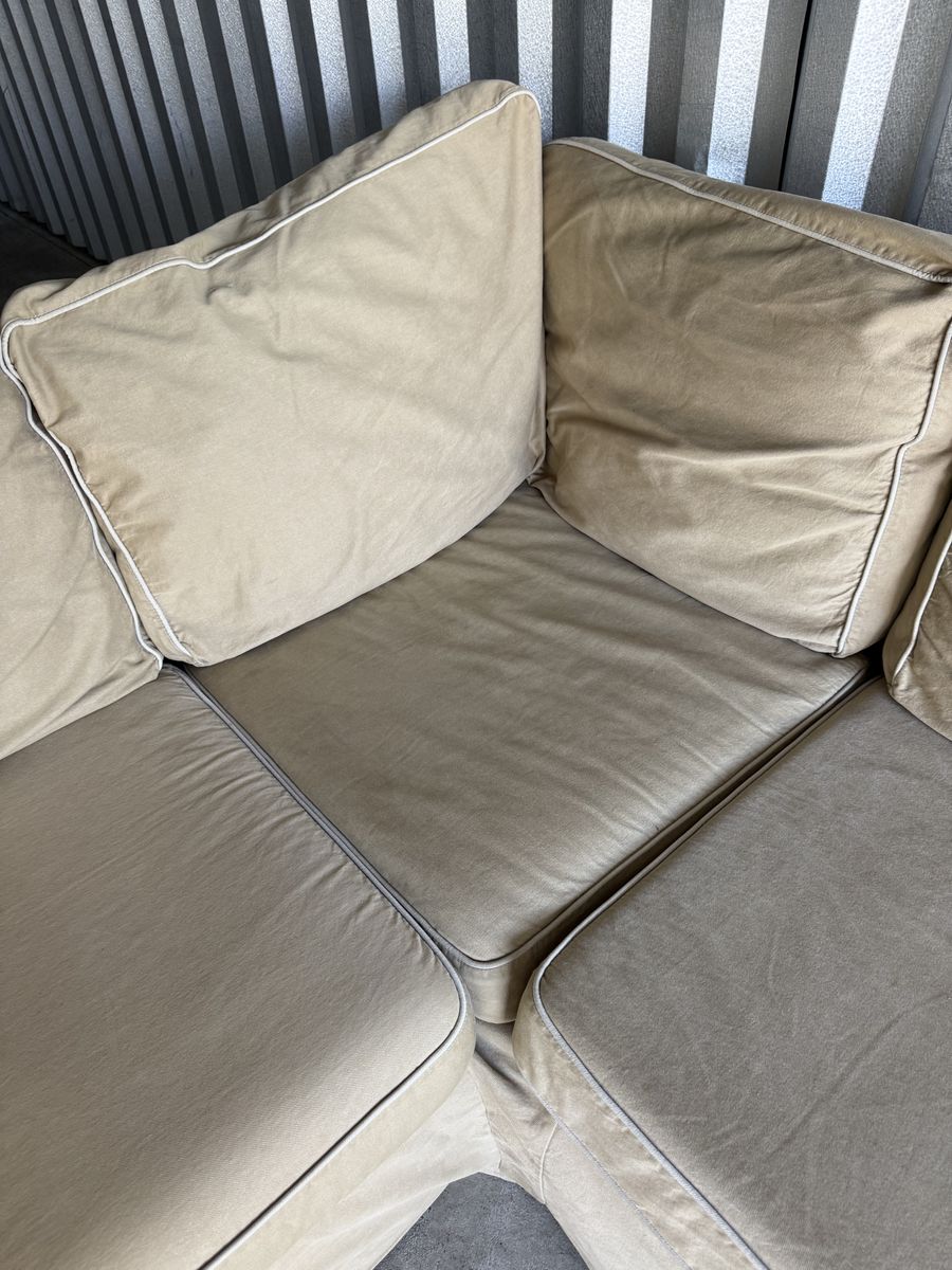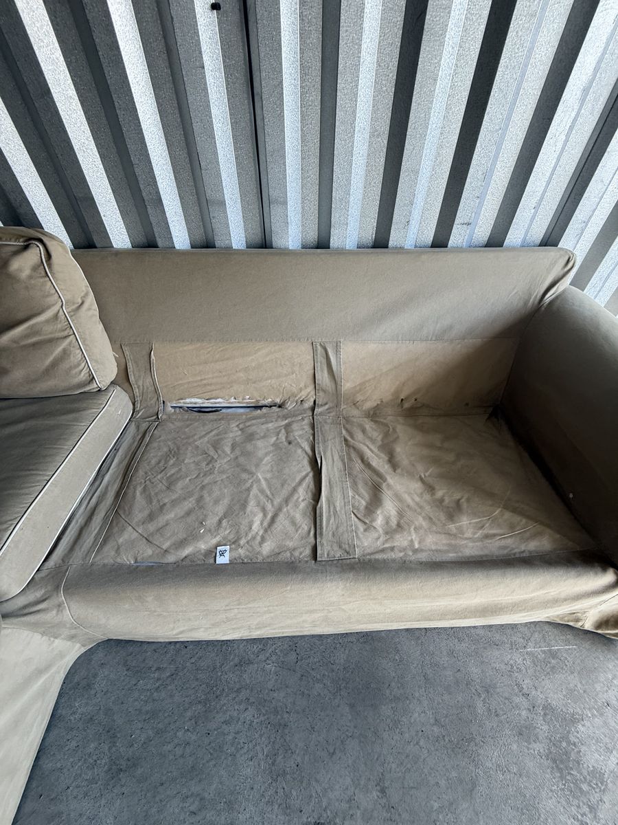 ApplePayComfortable 3 piece sectional in good condition! Pet and smoke free. All cushion covers are machine washable. Some tears in the material underneath the cushions as seen in photos. Otherwise its in great shape!