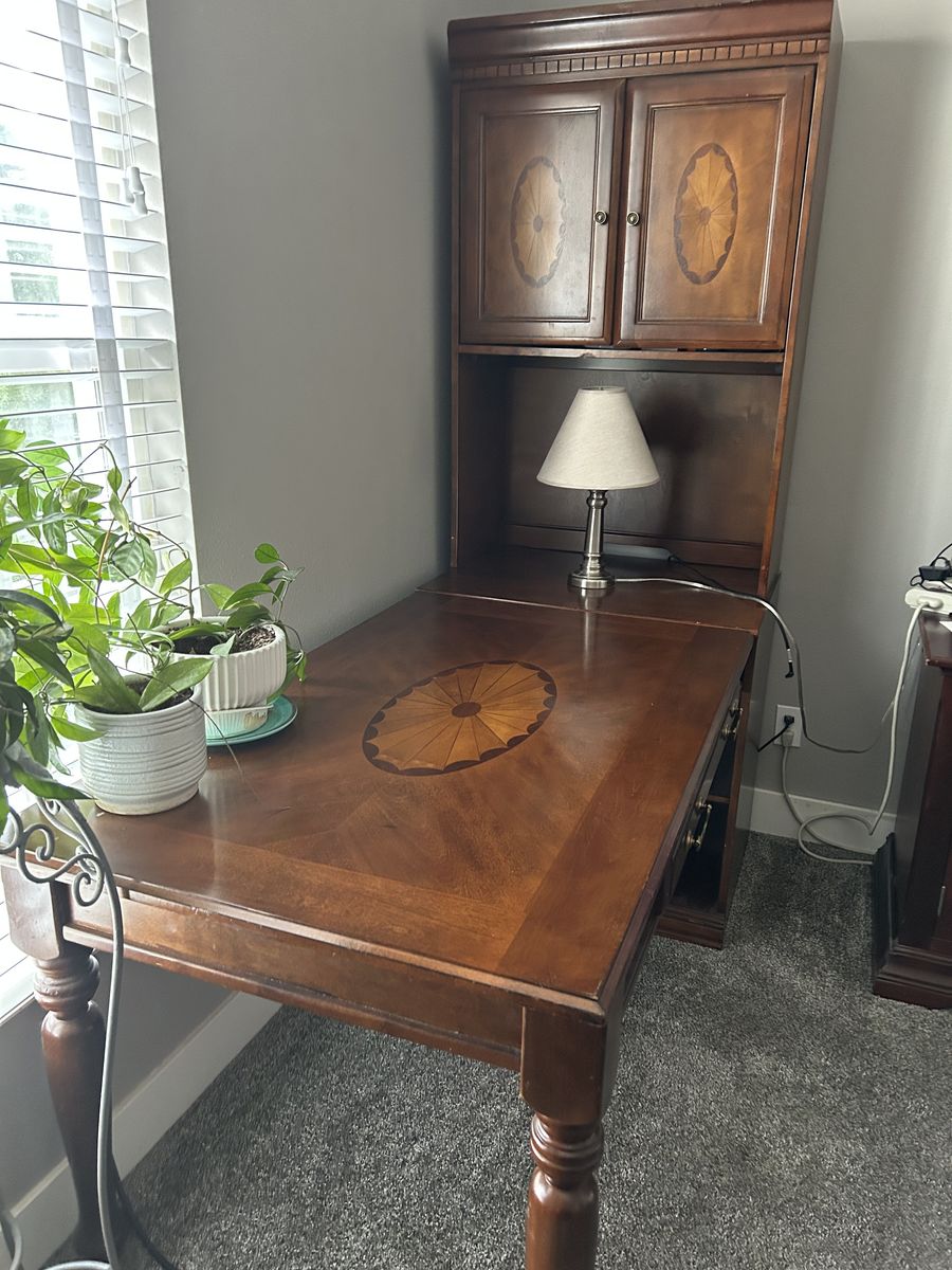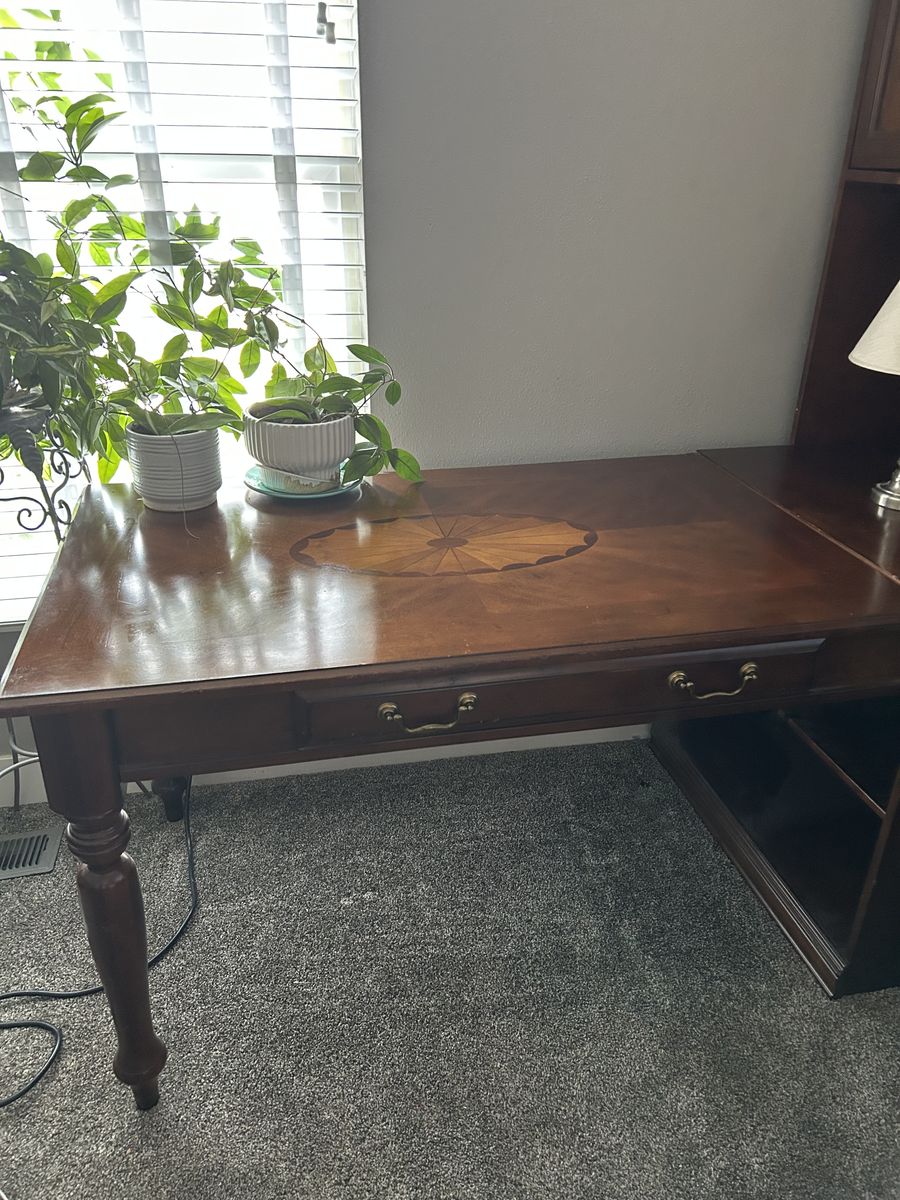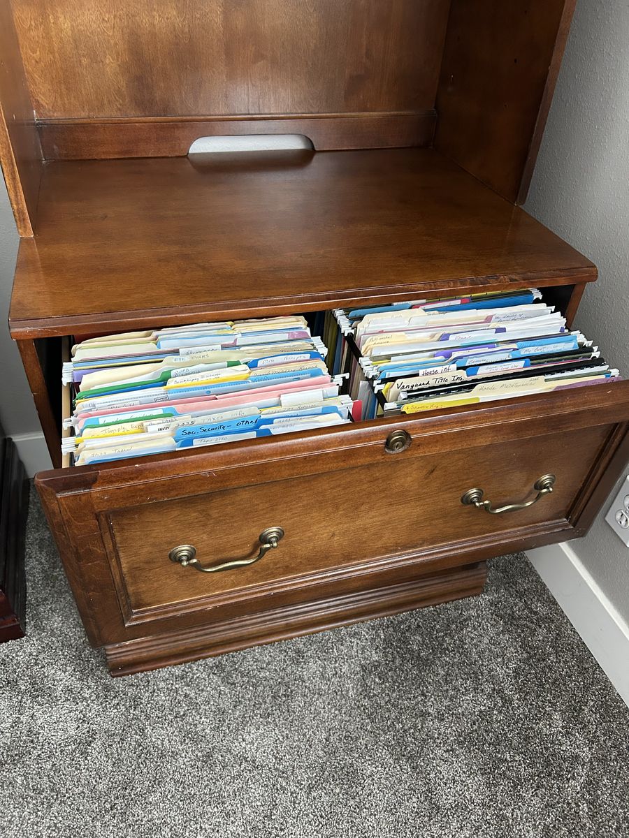 Nice matching file cabinet bookcase and desk cabinet - lots of storage. Perfect for a student. You can use the desk for your sewing table or a computer work. Dimensions as follows: Bookcase file cabinet- 30” wide x 15” deep x 87” high Desk/ cabinet as follows: Desk- 30” wide x 48” long x 30” high Cabinet measures: 30 inches high x 20 1/2 high x 87” high Selling both for $125 cash.