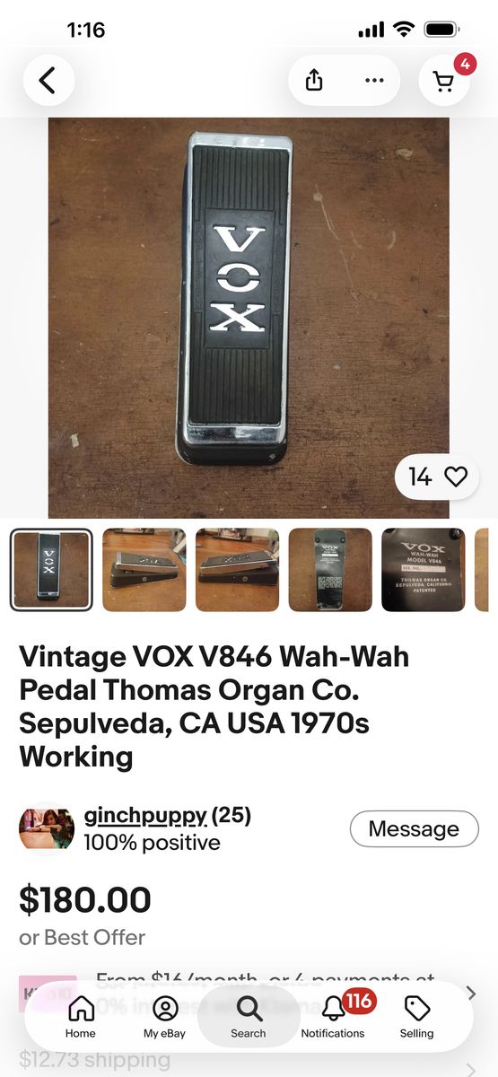 Vixx pedal Wah Wah Thomas USA like new . If you’re interested, thank you for looking.